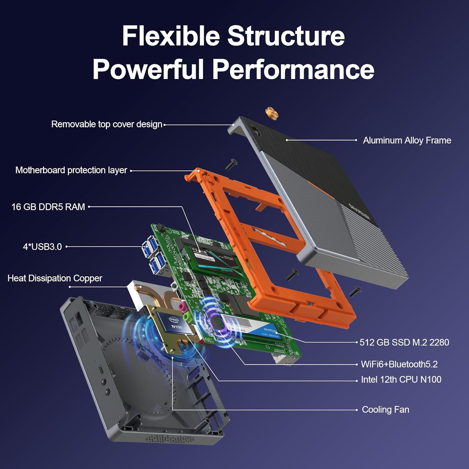 Sharevdi Mini PC, 12th In-tel N100 Prozessor (bis zu 3.4GHz) 4C/4T,Wi-11 Pro Mini Desktop PC 16G DDR