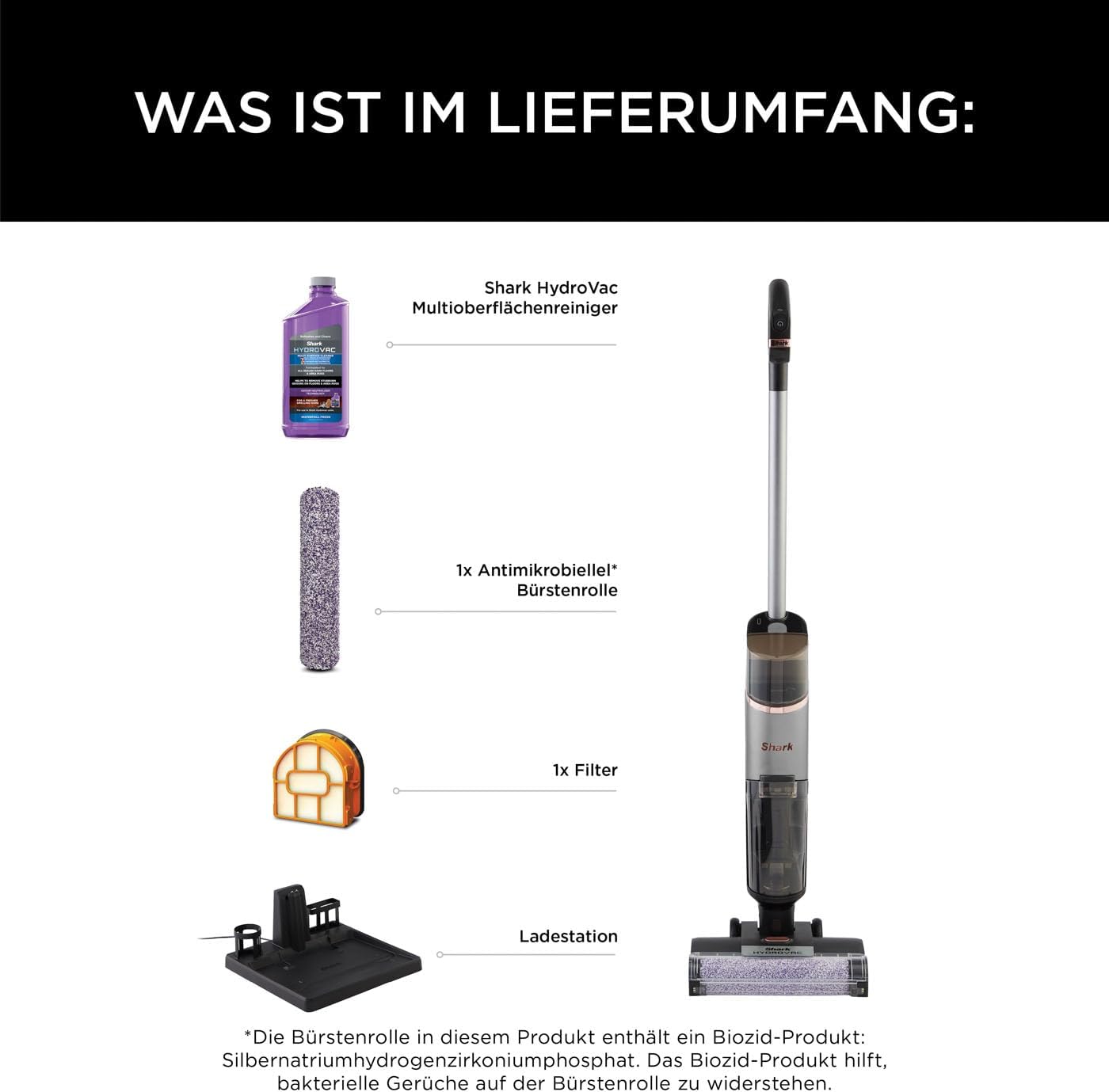 - ENTHÄLT: Shark HydroVac Kabelloser Hartbodenreiniger, Bürstenrolle, Filter, Mehrzweckreinigungslösung Starterflasche, Ladestation - EU-Stecker. Gewicht: 3,95 kg. Farbe: Anthrazitgrau.