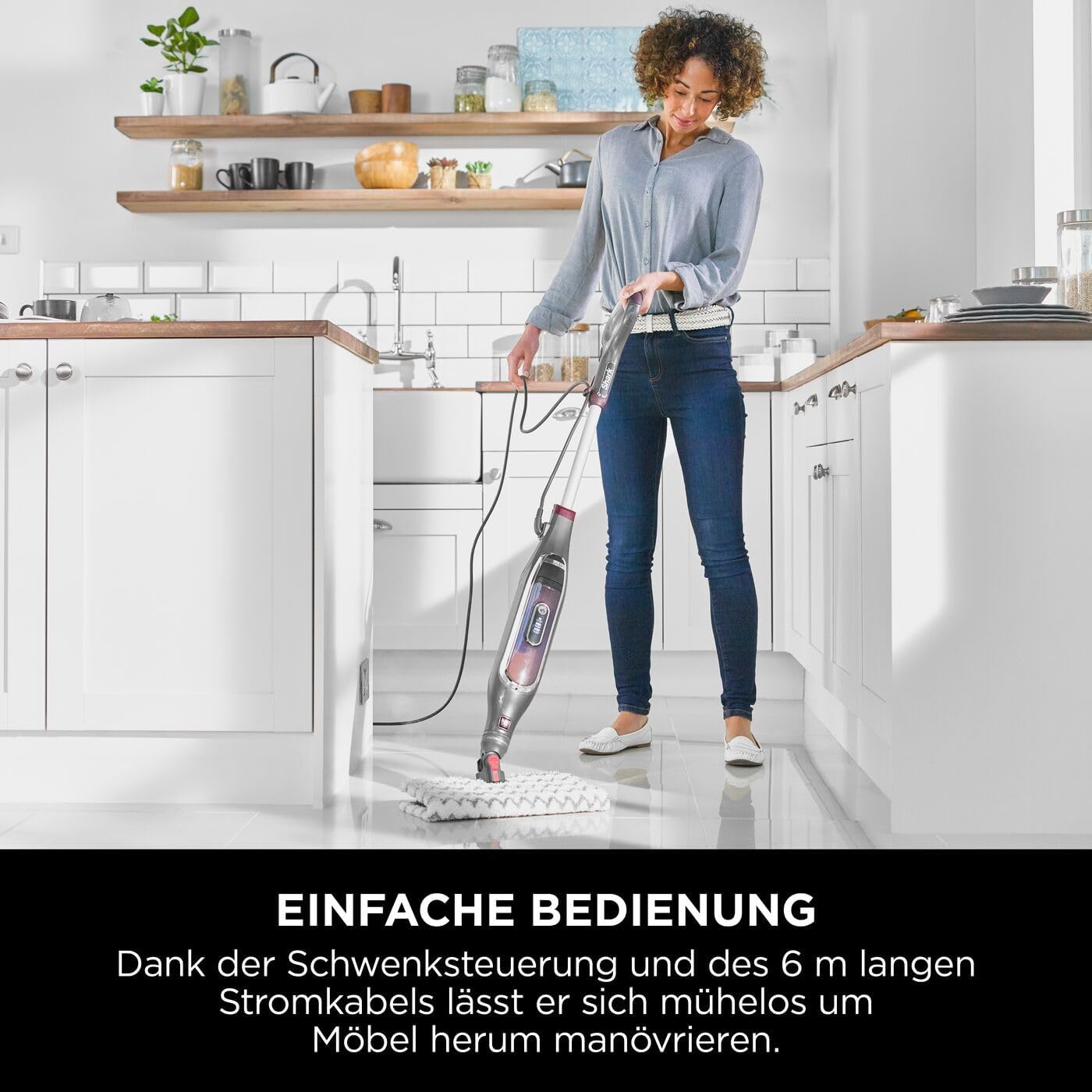 • Konzentrierter erhitzter Wasserdampf sorgt für streifenfrei saubere Böden im ganzen Haus