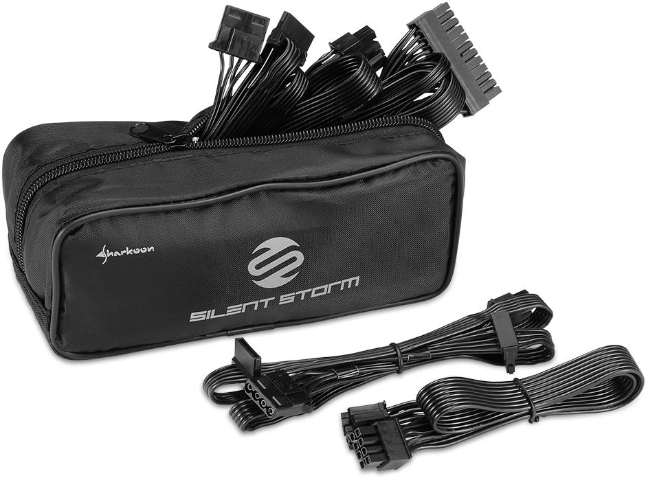 • SilentStorm SFX Gold, Stromkabel, Kabeltasche, Set mit Montageschrauben, Kabelbinder, ATX-Montagerahmen, Info-Flyer