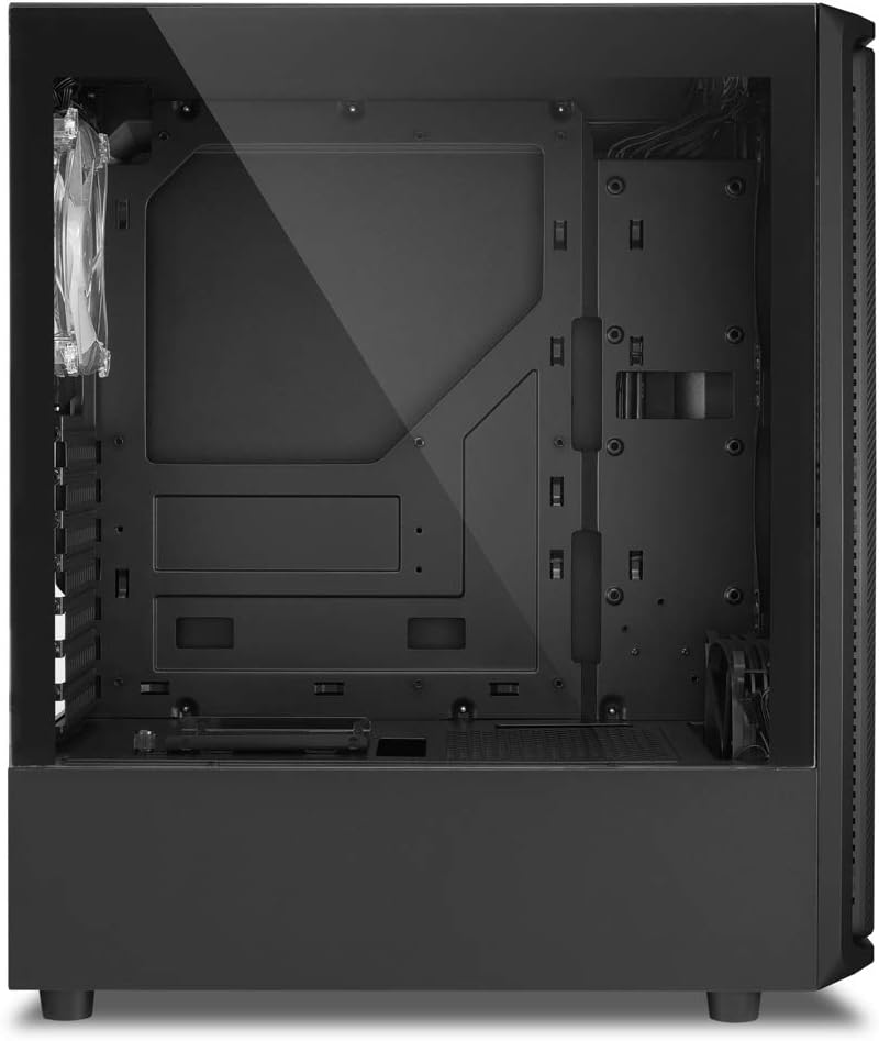 - KOMPONENTEN IM SCHAUFENSTER: Der schlichte Aufbau des SK3 RGB zieht dank seines Seitenteils aus gehärtetem Glas dennoch die Blicke auf sich. Hinter dem Glas lassen sich die eingebauten Komponenten erkennen, wodurch diese dezent präsentiert werden können. Das Seitenteil kommt auch ohne oberflächlich erkennbare Schrauben aus, da es ganz einfach in den Rahmen des Gehäuses eingehängt wird.