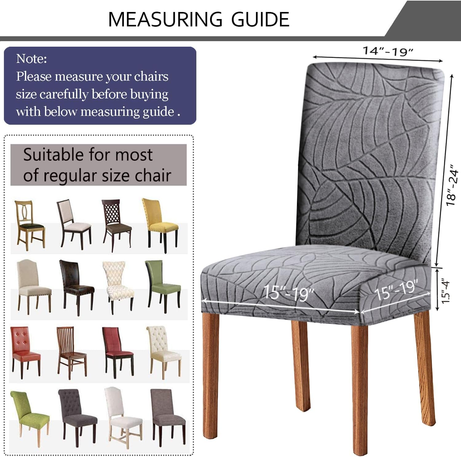 - Grösse: Dieser Stuhl Slipcover ist flexibel genug, um jeden Stuhl perfekt zu passen und dank der elastischen Kanten sicher zu bleiben., Stuhl-Rücken Höhe 20-24''(50-60Cm) und Stuhl-Rücken Breite 15-18''(38-45Cm). Stuhl Sitzbreite und Länge