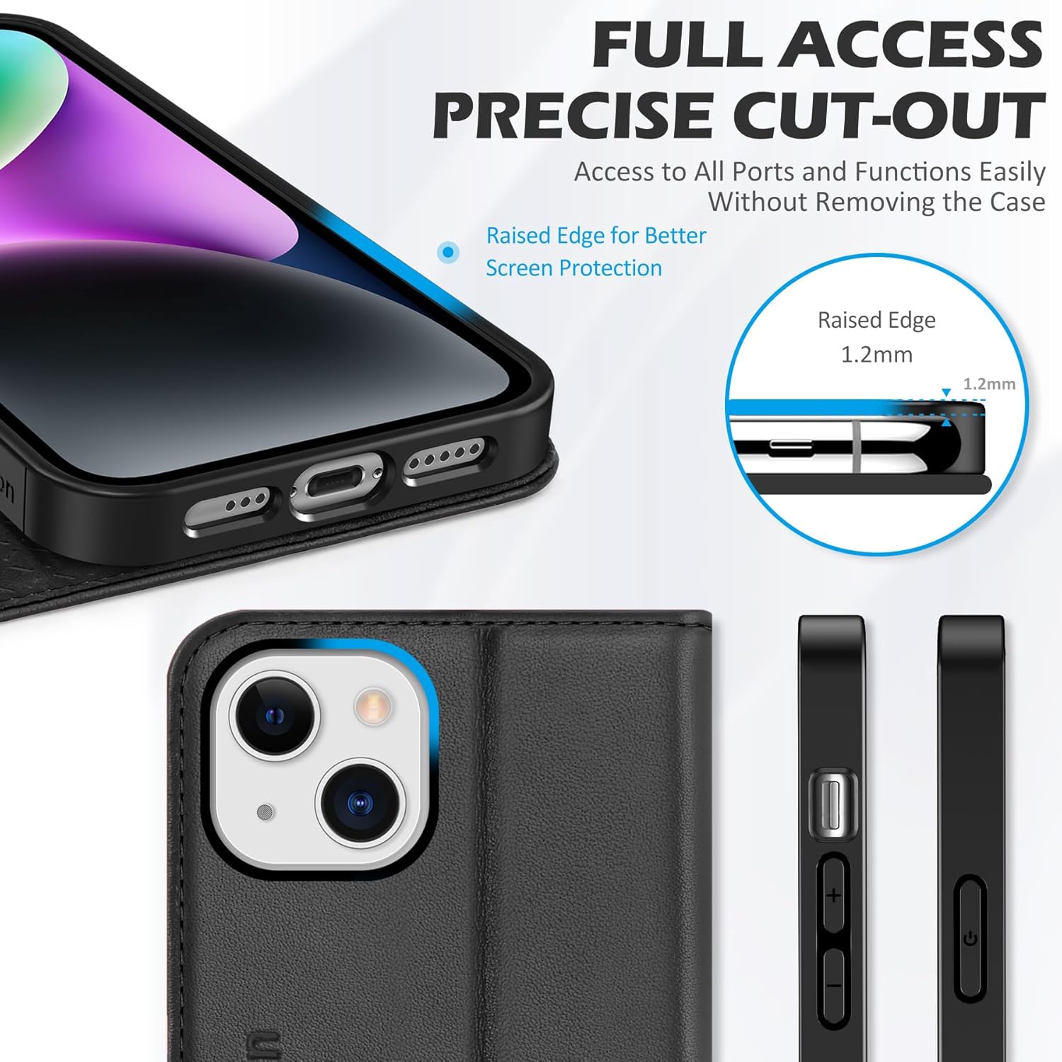 SHIELDON Hülle für iPhone 14 5G Stossfest Handyhülle [Erstklassig Echtleder] [Kartenfach] [Magnet] [