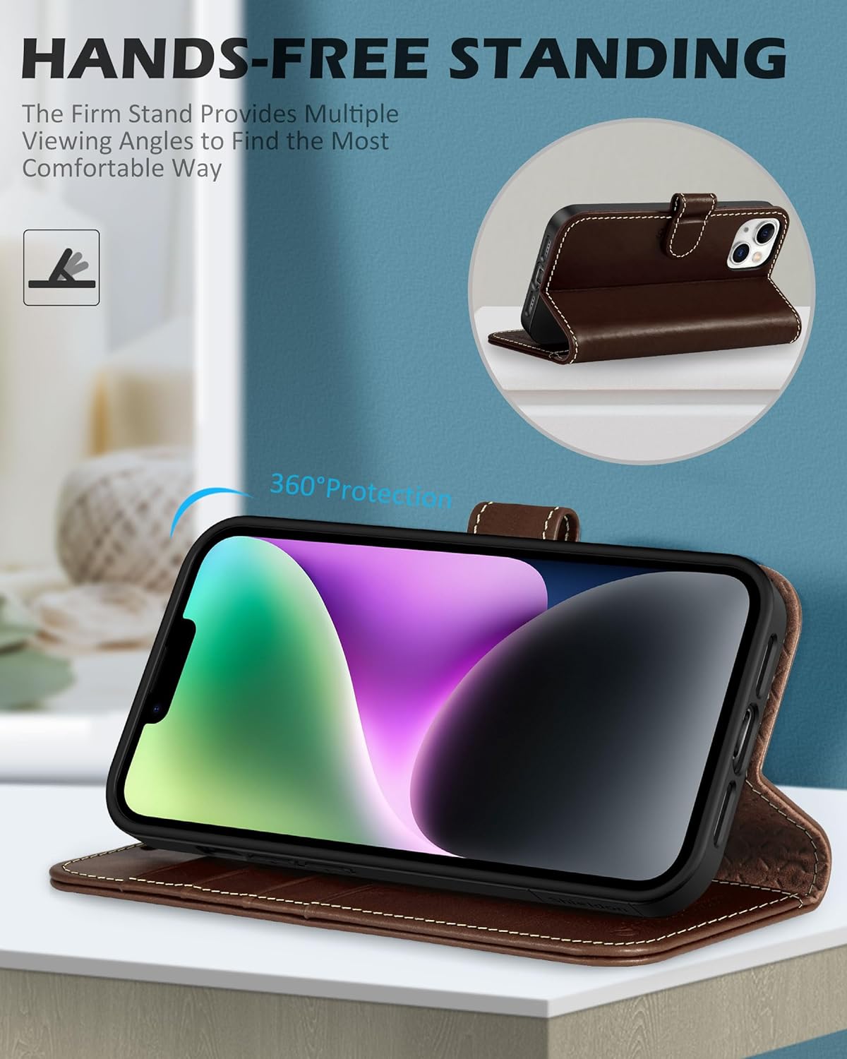 - ✅【Gewachst Echtleder & Verstärkt TPU】 Retro Look. Die leichte und praktische Vollleder-Hülle, die sich aus dem echten hochwertigen gewachsten Leder besteht, wird komplett von Hand gefertigt. Saubere Nähte, elegantes Aussehen, weiche Textur und