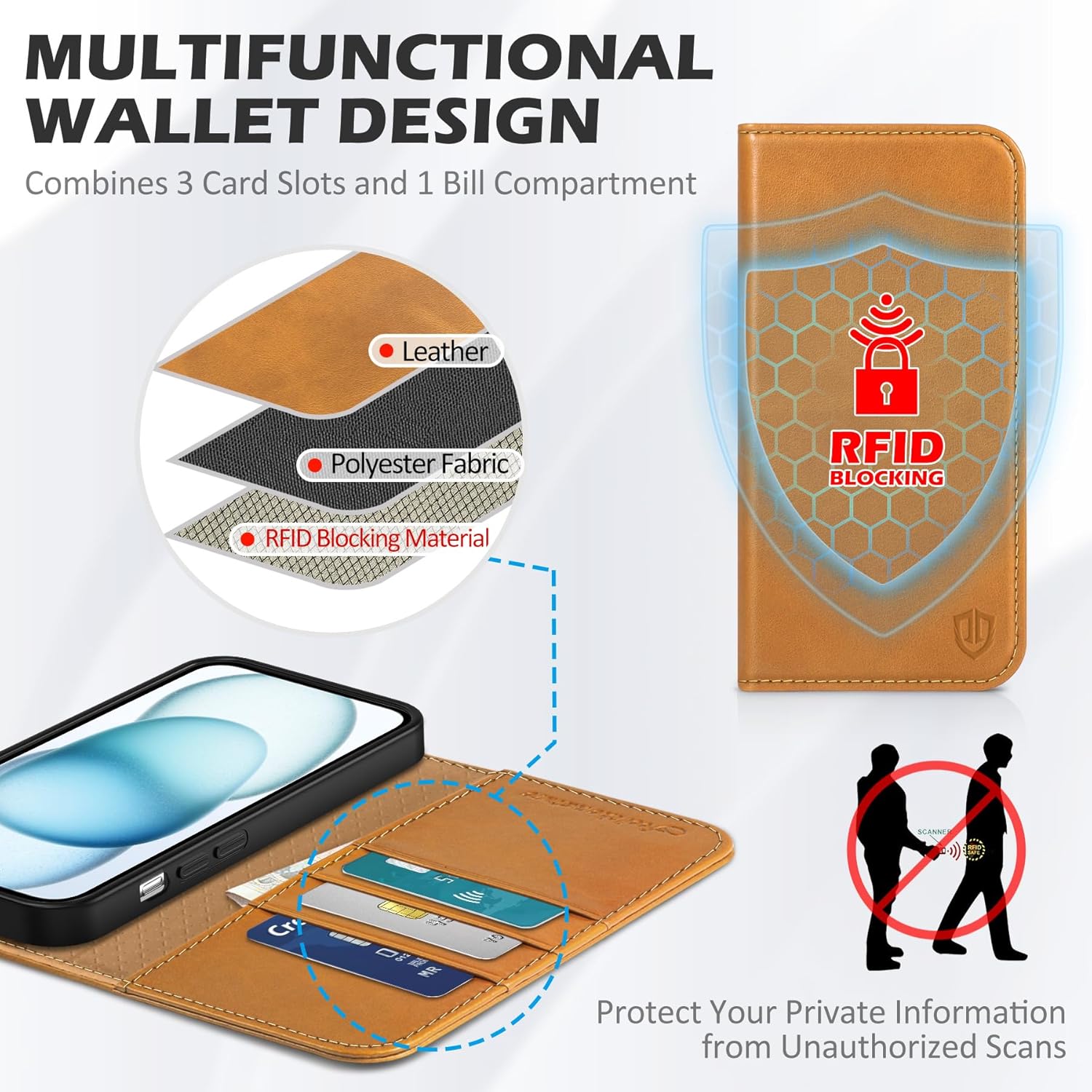 - ✅【Anwendbar Modell】Ihr Handysmodell zubestätigen vor dem Kauf. Diese Lederhülle gilt nur für iPhone 15 5G 2023 (6,1 Zoll).【Nicht für iPhone 15 Pro / iPhone 15 Plus / iPhone 15 Pro Max】