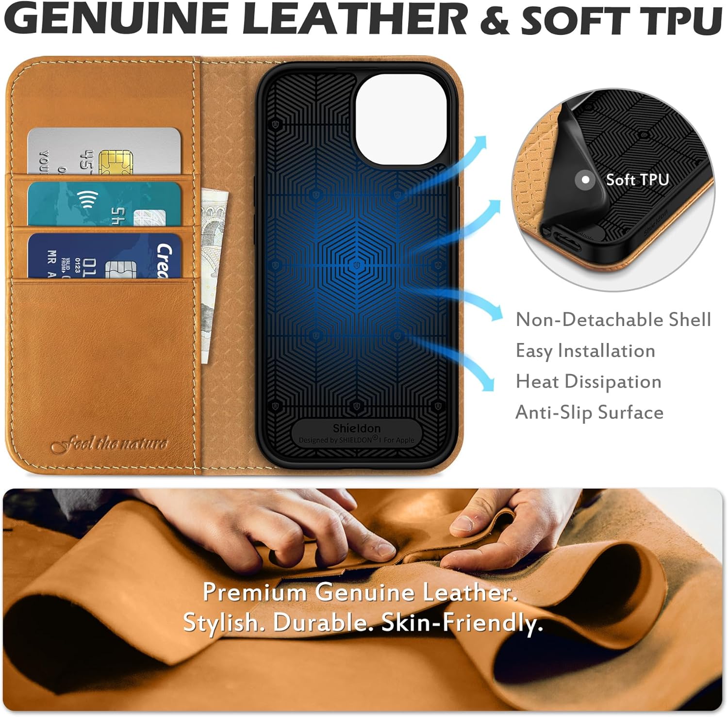- ✅【Erstklassiges Echtleder & Verstärktes TPU】 Die leichte und praktische Vollleder-Hülle, die sich aus dem echten hochwertigen Rindleder besteht, wird komplett von Hand gefertigt. Saubere Nähte, elegantes Aussehen, weiche Textur und schnelle
