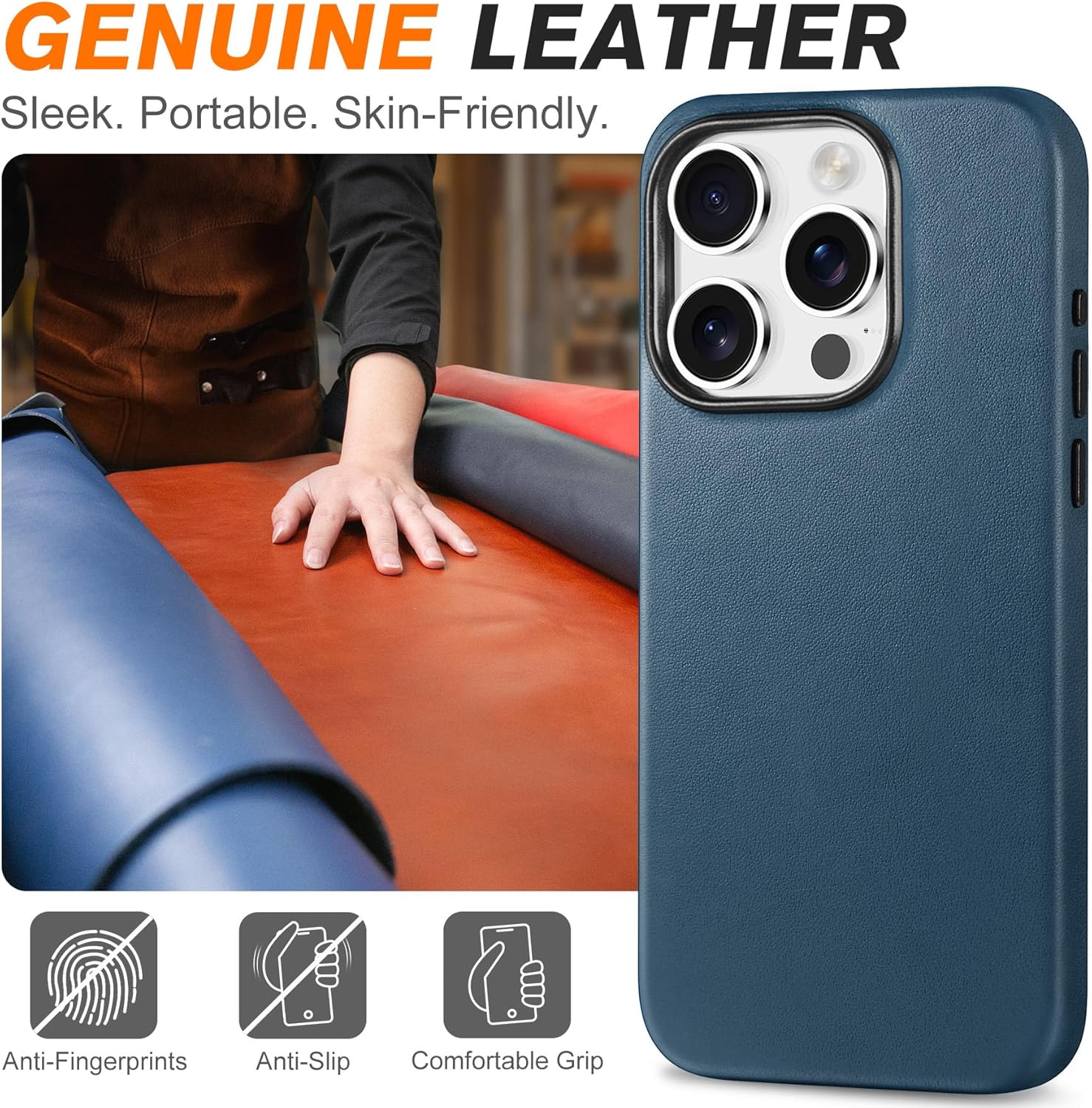 - ✔【Echtleder & Rutschfestigkeit】Erstklassig Rindleder, mit Naturleder Textur, daher ist die Rutschfestigkeit möglich. Auf das Leder werden die Fingerabdrüke nicht stellen, und Ihre Hülle sieht jederzeit sauber aus.