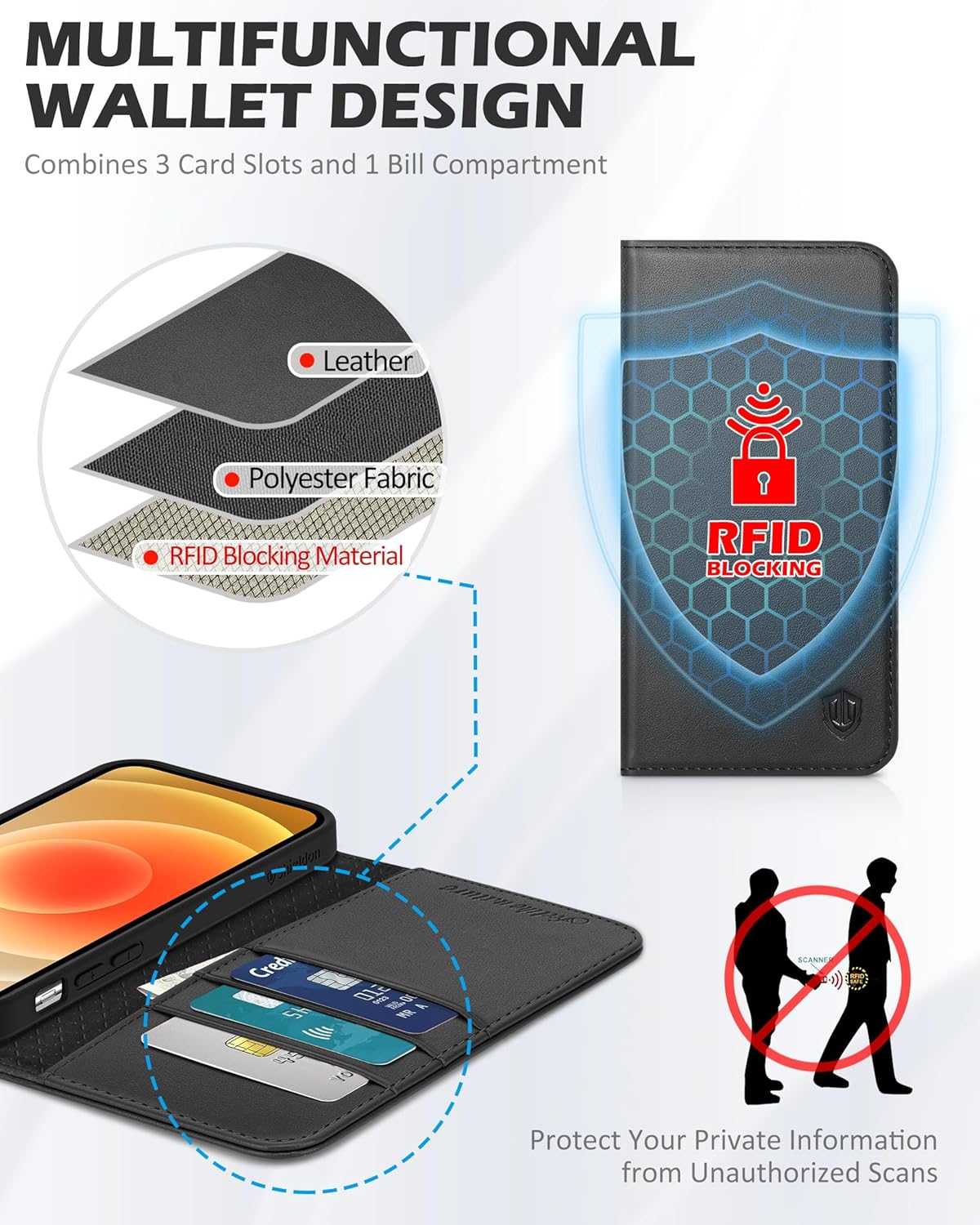 - ✅【Buchstil & RFID】 Mit 3 Kartenfächern und 1 Bargeldfach zeigt sich diese Hülle als perfekte Kombination von Schutzhülle und Brieftasche. Es schützt Handy nicht nur als Beschützer gegen schmutz, stössen und kratzern, sodern auch als