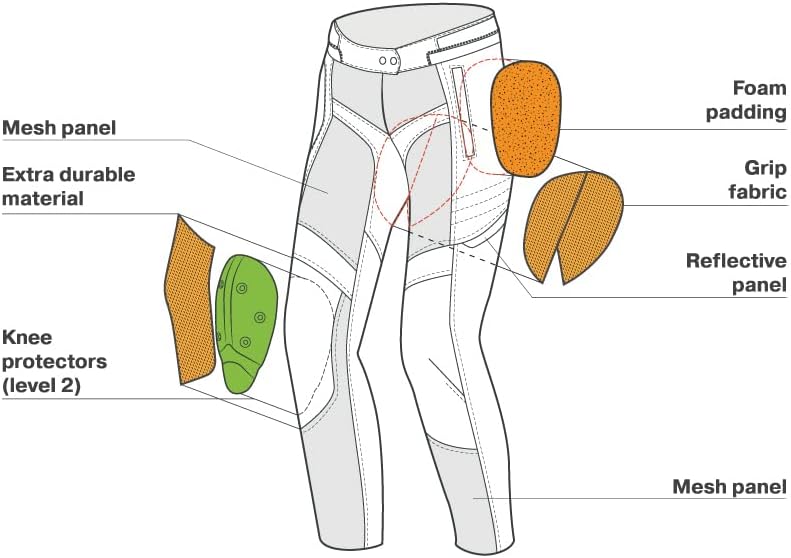 • SCHUTZ - CE-zertifizierte Rücken-, Schulter- und Ellbogenprotektoren und extra verschleissfestes Gewebe an Schultern und Ellbogen, verstärkte Doppelnähte.