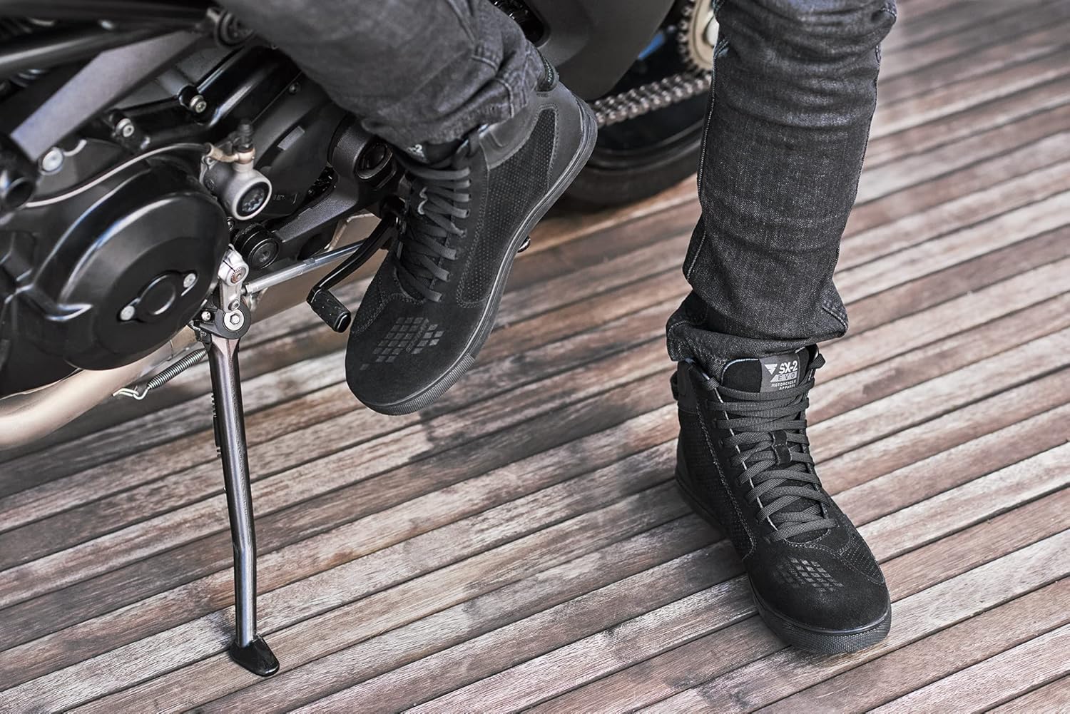 - BELÜFTET - Perforiertes Wildleder an mehr als der Hälfte der Motorradturnschuhe ermöglicht einen optimalen Luftaustausch während der Fahrt und lässt Ihren Fuss an einem langen Tag im Büro atmen
