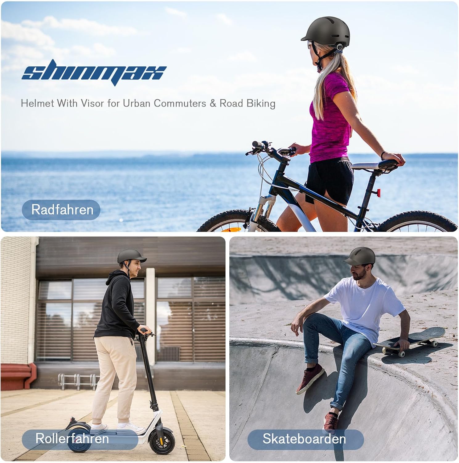 - 🚴🏻Unsere fahrradhelme sind für den städtischen Pendler konzipiert. Ähnlich wie eine alltägliche Mütze bieten unsere fahrradhelm mit Visier auch bei heissem Wetter Schutz vor der Sonne und bleiben dabei stilvoll. Somit ist er ein perfekter