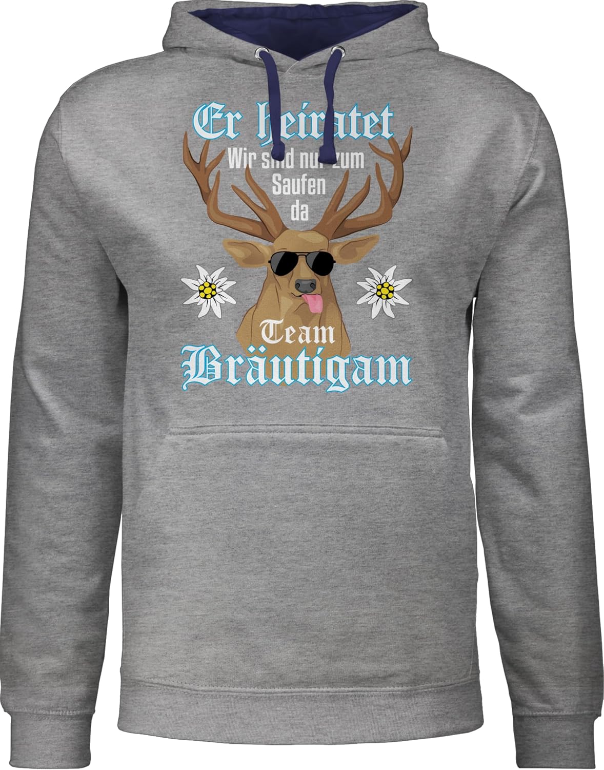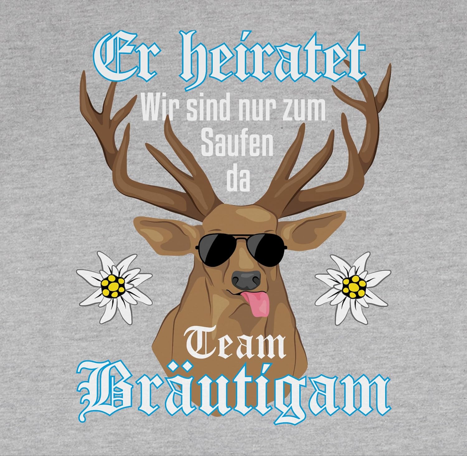 - Er heiratet wir sind nur zum Saufen hier: Witziges Motiv mit Hirsch und Spruch für den JGA