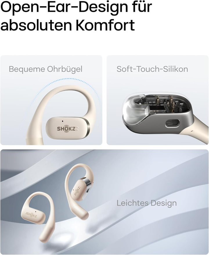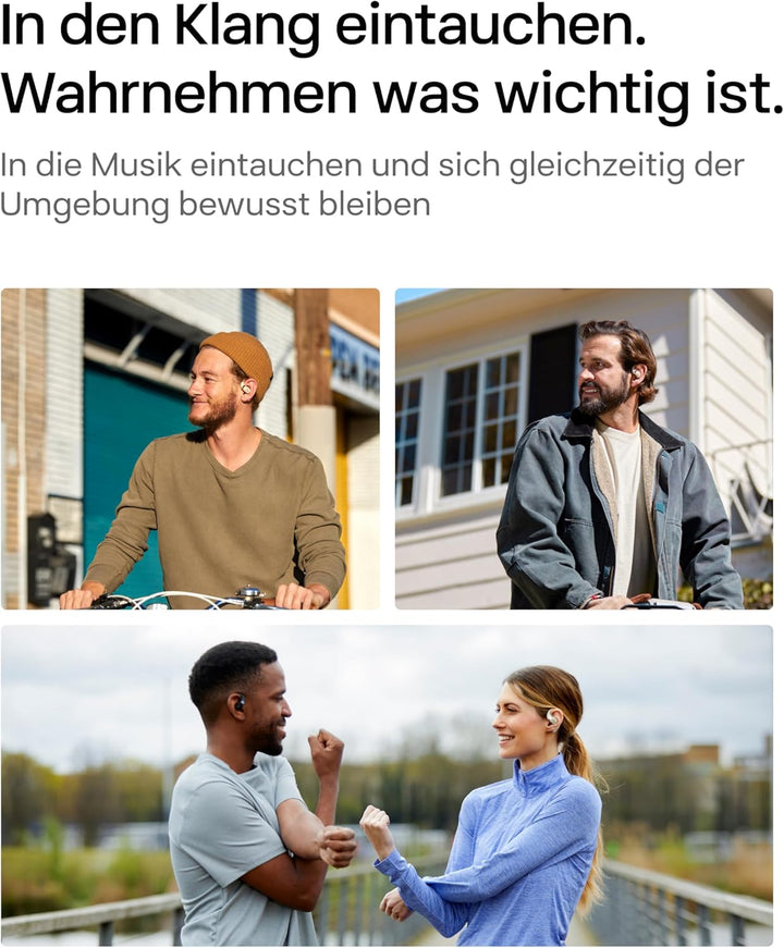 - 【Open-Ear Komfort】Geniessen Sie extremen Komfort mit Open-Ear Design von kabellose Earbuds OpenFit, das einen sicheren, aber nicht invasiven Sitz ermöglicht. Mit einem Gewicht von nur 8,3 g pro Ohrhörer werden Sie kaum bemerken, dass sie vorhanden