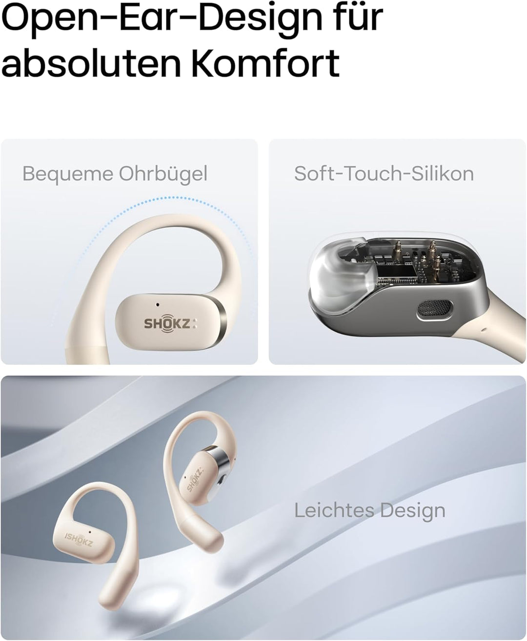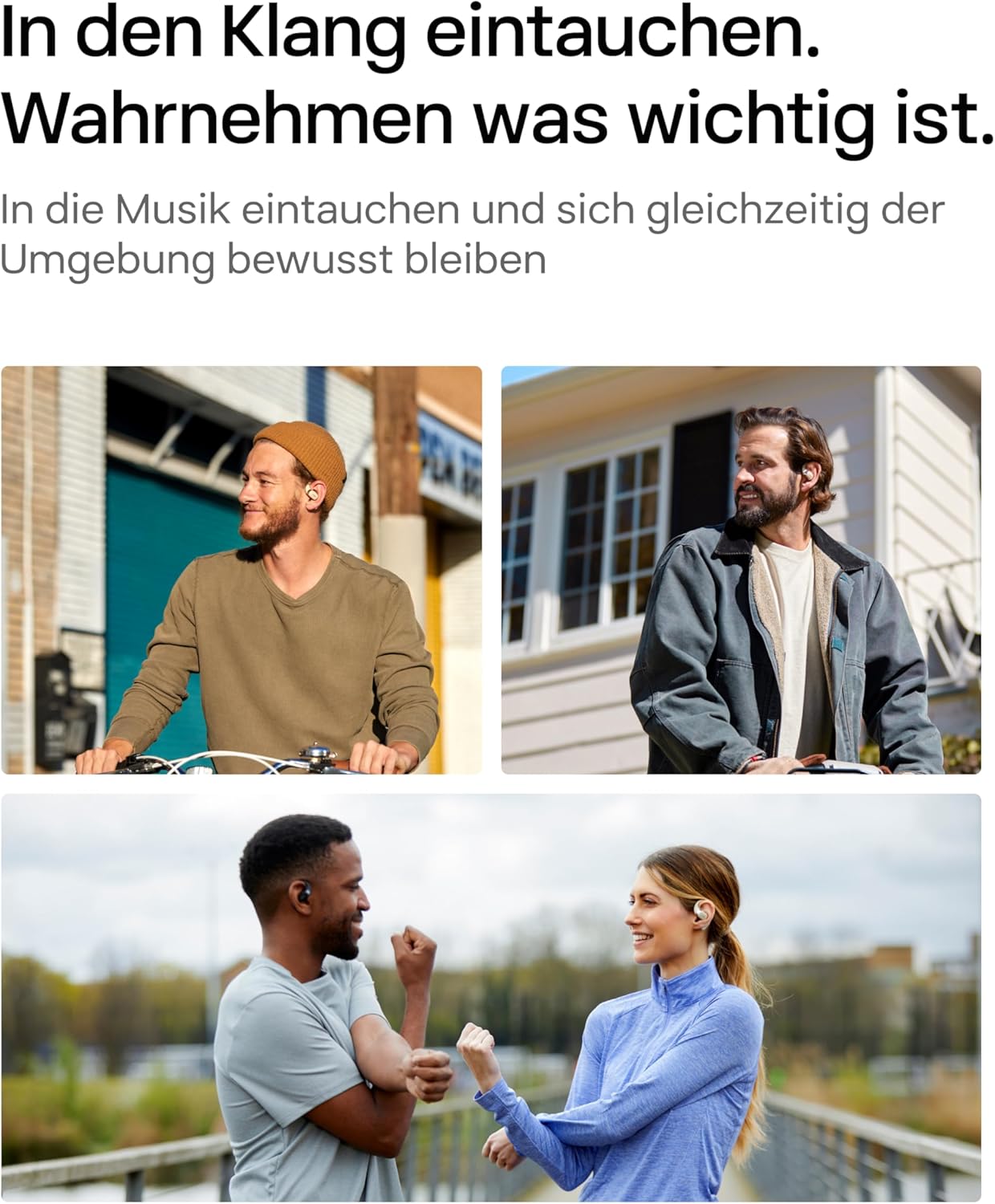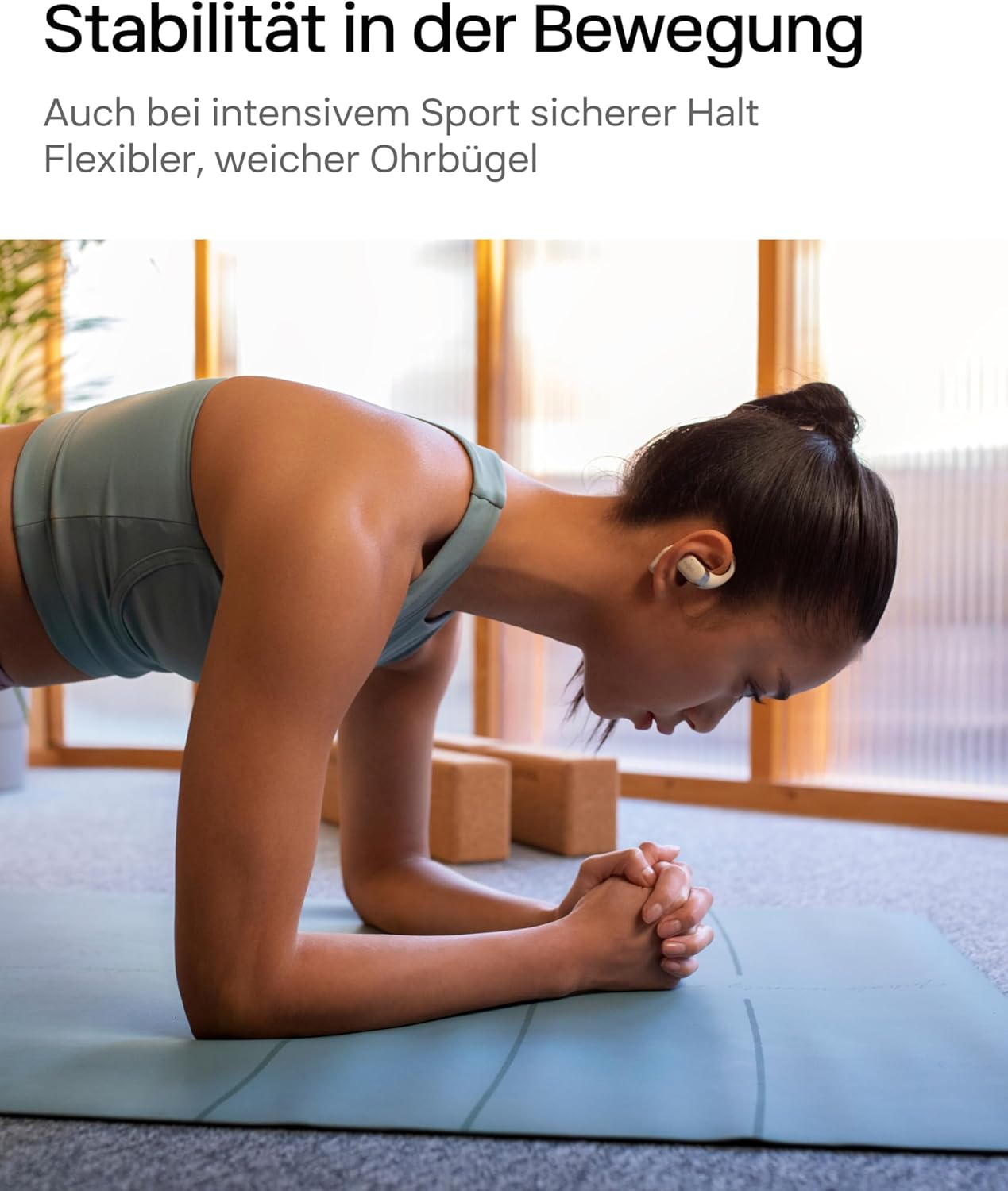 - 【Stabil und sicher】Ergonomische Ohrbügel und stabile Bluetooth 5.2- Konnektivität sorgen dafür, dass die OpenFit kabellosen Kopfhörer an ihrem Platz bleiben und auch bei intensivem Einsatz eine reibungslose Verbindung aufrechterhalten.