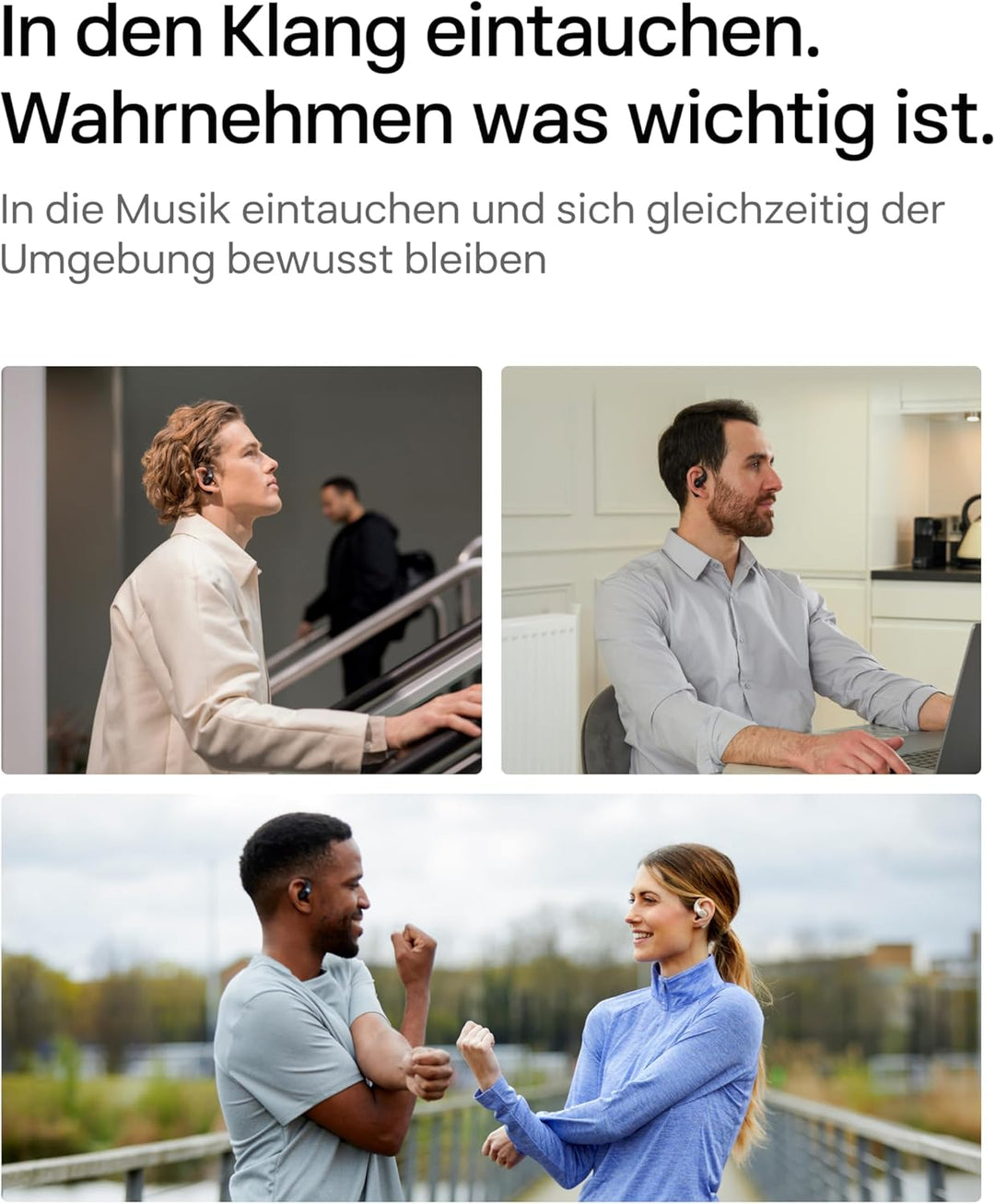 - 【Situationsbewusstsein】-Dank des offenen Designs der OpenFit kabellosen Kopfhörer können Sie die Umgebungsgeräusche hören, was sie perfekt für den Einsatz im Büro, zu Hause oder bei Aktivitäten im Freien macht.