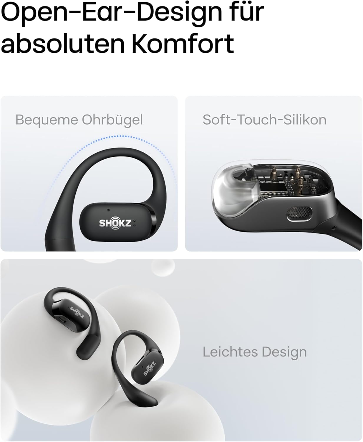 - 【Open-Ear Komfort】Geniessen Sie extremen Komfort mit Open-Ear Design von kabellose Earbuds OpenFit, das einen sicheren, aber nicht invasiven Sitz ermöglicht. Mit einem Gewicht von nur 8,3 g pro Ohrhörer werden Sie kaum bemerken, dass sie vorhanden