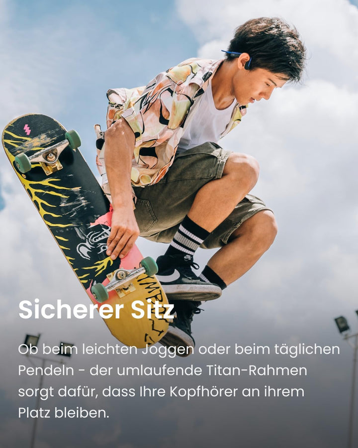 - Sicherer Sitz und Sicherheit: Mit dem Open-Ear Design bietet OpenMove einen sicheren Halt, der auch bei intensivem Training wie Laufen, Radfahren, Springen oder Wandern nicht verrutscht. Es ermöglicht ein einzigartiges Musikerlebnis, das dich nicht von