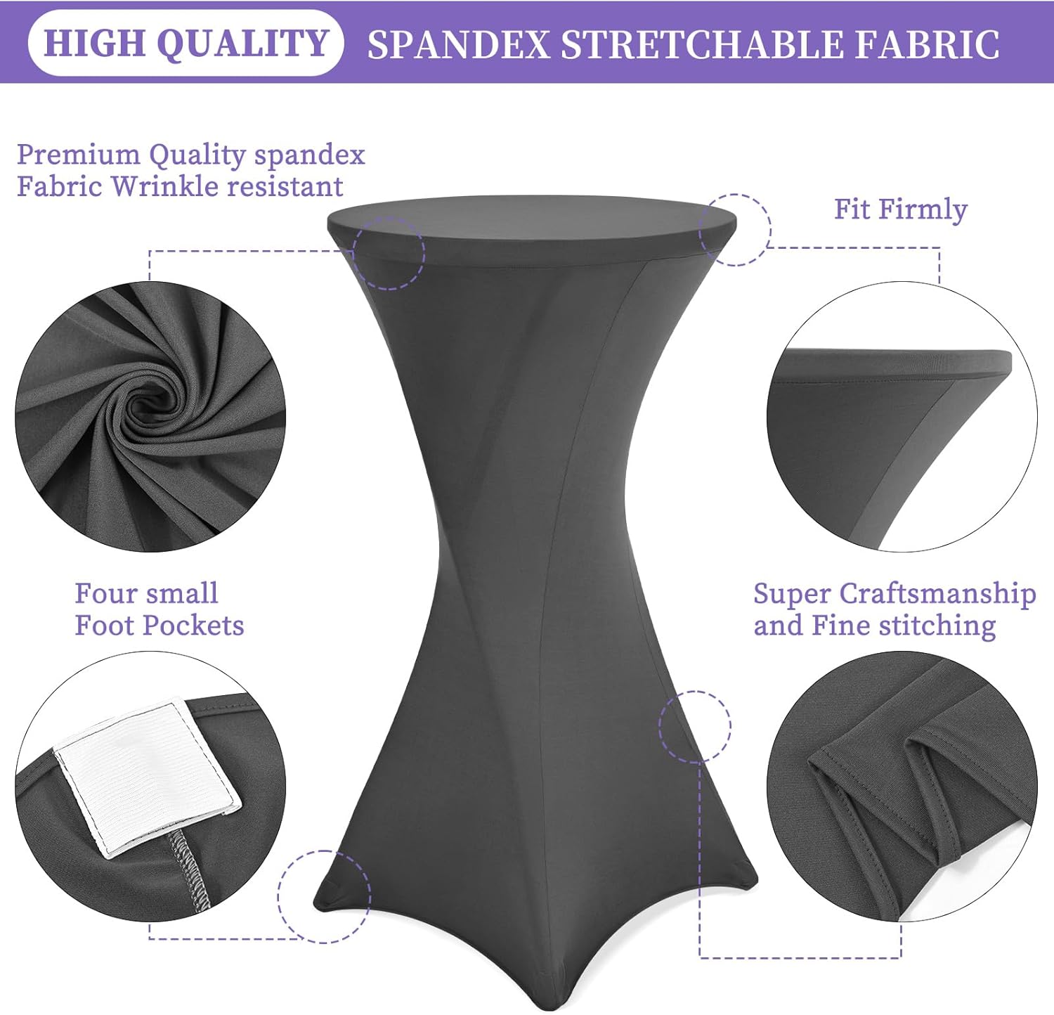 - 🌱Ausgezeichneter Service: Diese Cocktail-Spandex-Stretch-Tischdecke zeichnet sich durch eine exquisite Verarbeitung mit doppeltem Nadelsaum aus, ist sauber geführt und reisst nicht. Kann viele Male verwendet werden. Wir versprechen, dass unsere