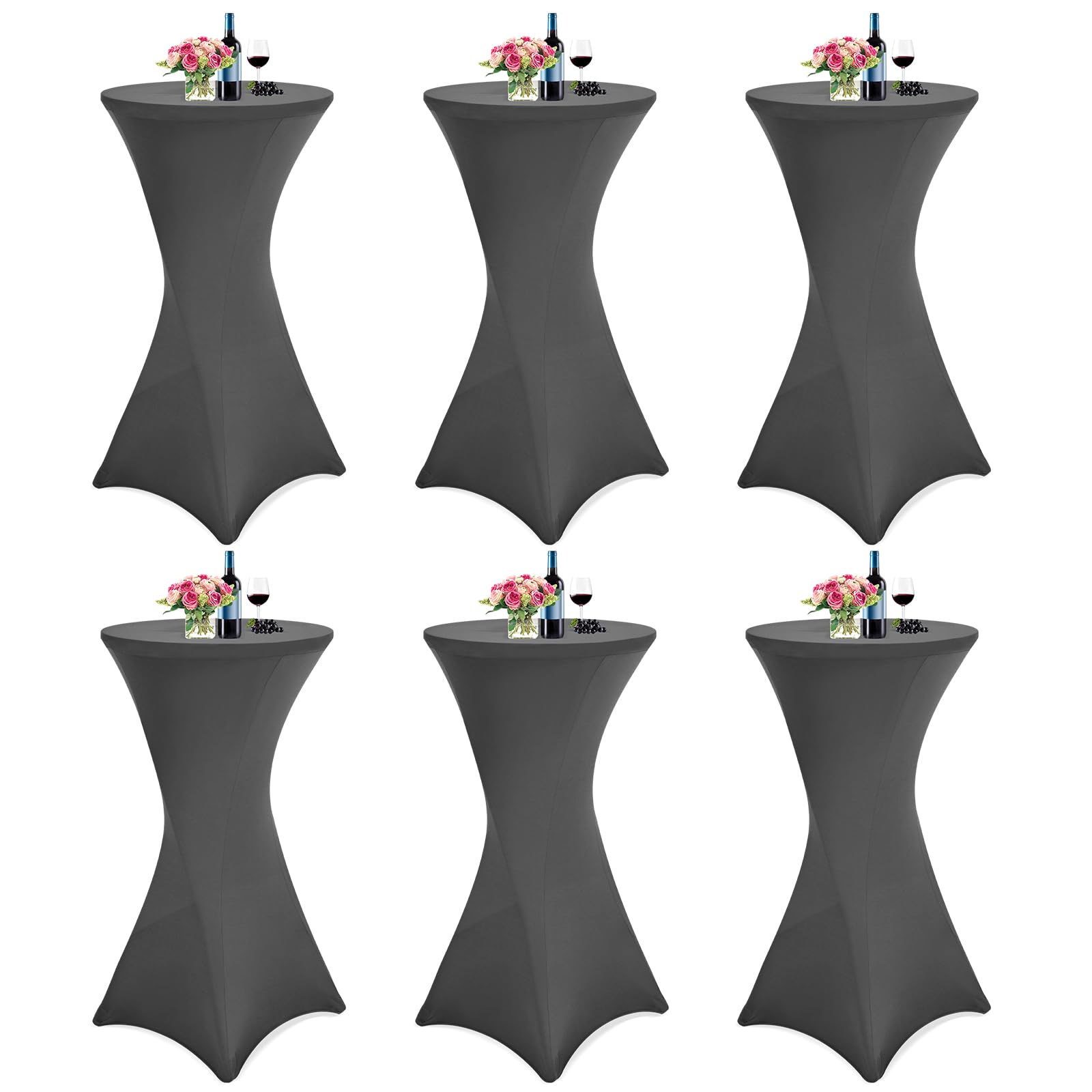 - 🌱Spandex-Cocktail-Stretch-Tischdecken-Set: Sie erhalten 6 Packungen dunkelgrau Stretch-Cocktailtischdecken mit quadratischen Ecken, hergestellt aus 85% Polyester und 15 % Elasthan, wodurch die Tischdecke dehnbarer und dicker wird, sodass die