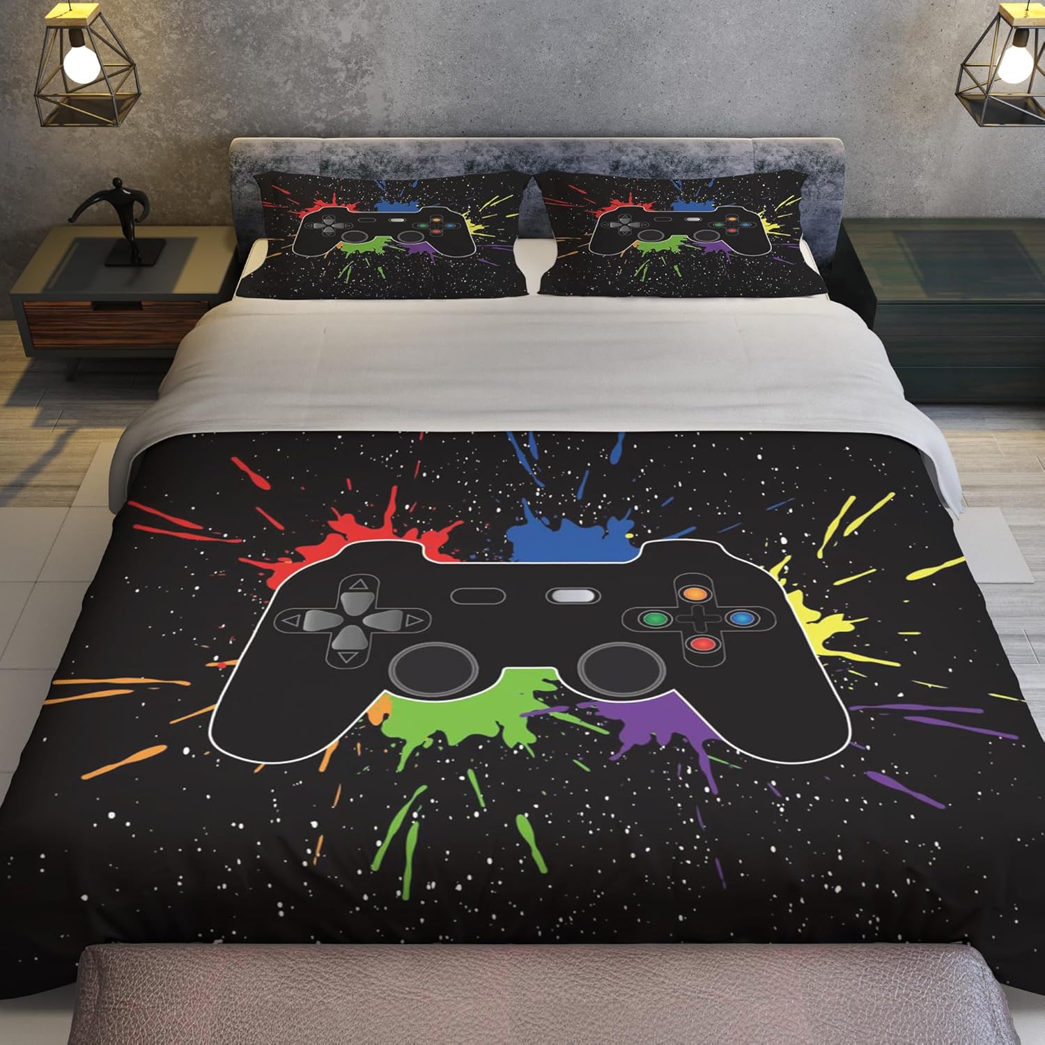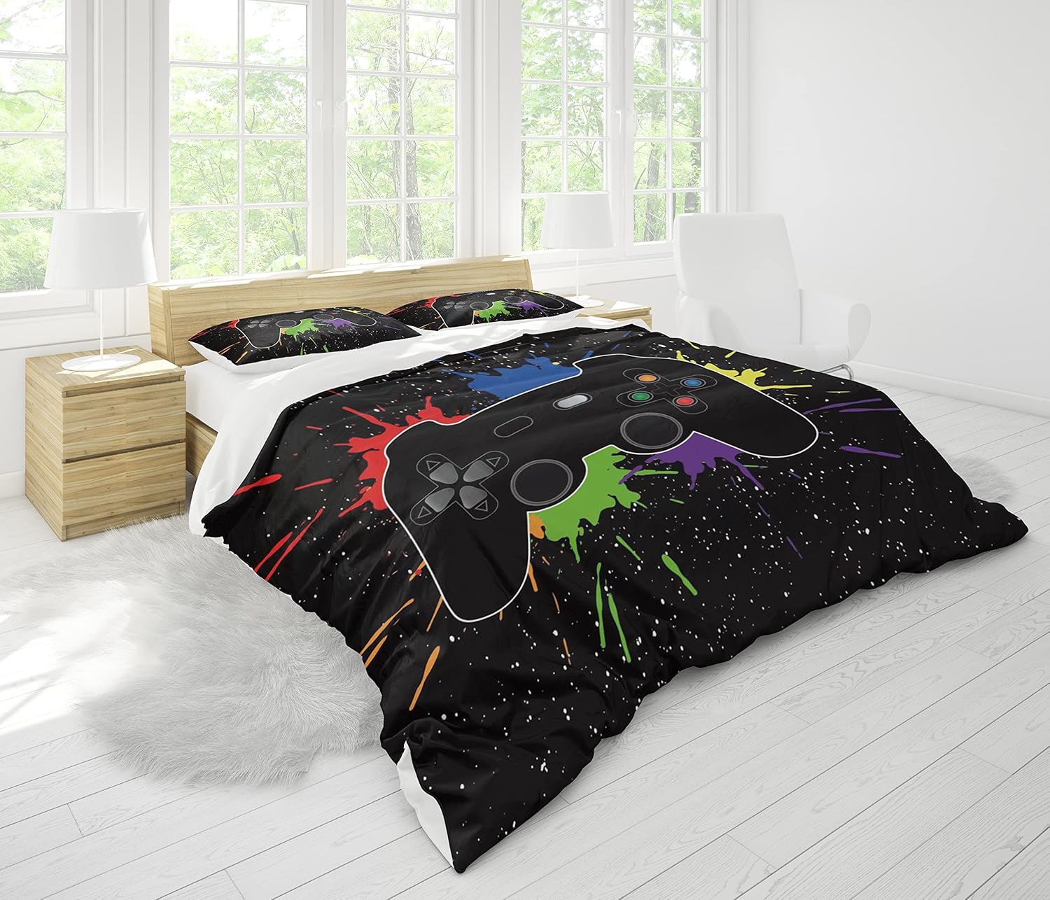 - 🎮【Bettwäsche-sets Kinder Gamepad Material】: 100% Polyester, Diese weiche, angenehme, atmungsaktive Bettwäsche sorgt für ein ideales Schlafklima,wir haben eine Vielzahl von Grössen zur Auswahl, Sie finden einen Bettbezug, der zu Ihrer