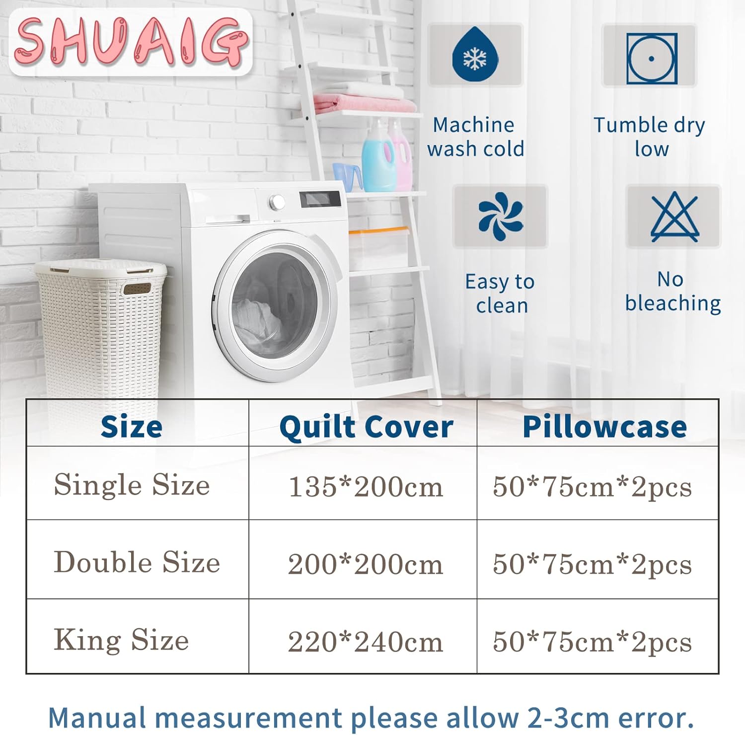 - 🕹【Pflegeleicht】: Das Bettwäscheset ist maschinen waschbar und trocknergeeignet. Die höchste Waschtemperatur sollte 30 Grad nicht überschreiten.Schliessen Sie die Abdeckungen und drehen Sie sie um oder verwenden Sie vor dem Waschen
