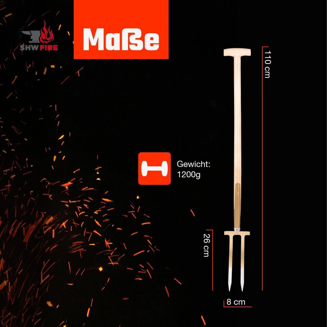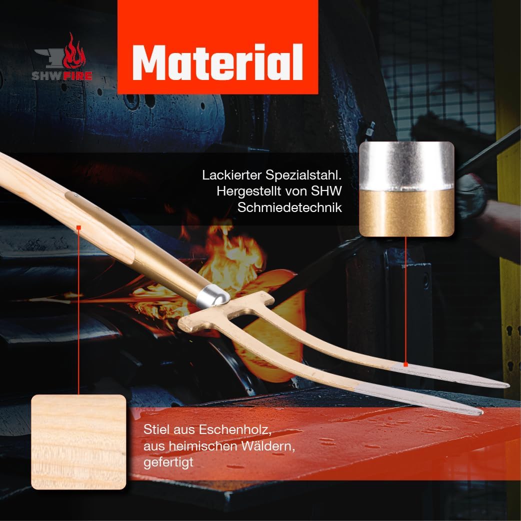 SHW-FIRE 59046 Rosengabel Bajonettzinken Stahl Handgeschmiedet Geschmiedet mit Stiel Holzstiel 85 cm