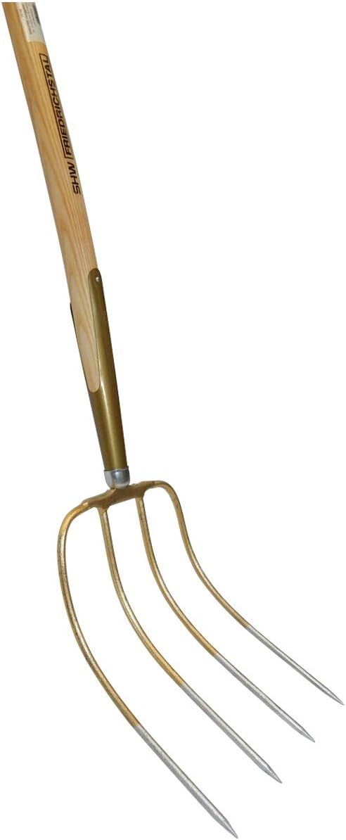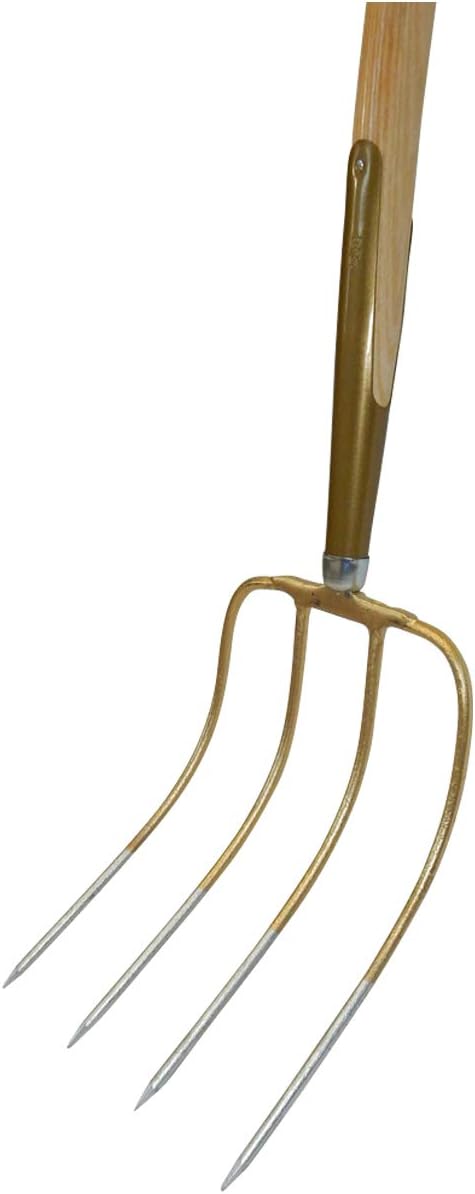 • HOCHWERTIGES MATERIAL: Hochwertige Dunggabel aus Spezialstahl; vier runde Zinken in Gold; fein geschliffener Eschenholzstiel aus heimischen Wäldern; mit Hülse und Kappe verstärkt; Rückenschonende Grösse; DER LANGE HOLZSTIEL SORGT FÜR LEICHTIGKEIT UND NUTZUNGSKOMFORT; Ideale Hebelwirkung liegt gut in der Hand und reibt nicht an den Fingern
