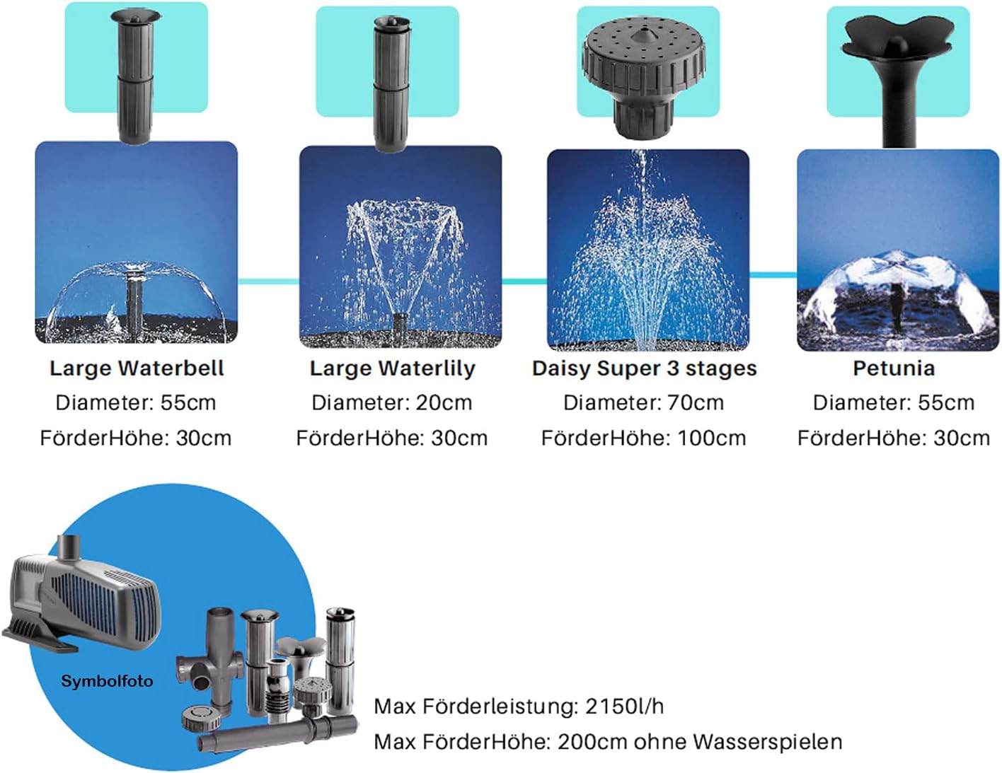 - max. Förderhöhe: bis zu 200 cm