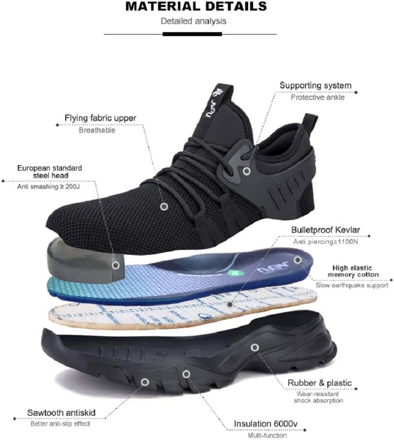 Sicherheitsschuhe Herren Leicht Arbeitsschuhe Damen Stahlkappe Schutz Atmungsaktiv Turnschuhe Mesh W