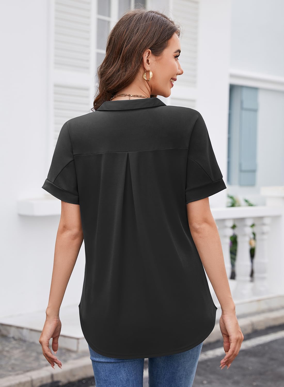 - 🌸 Mode und elegante Details - Damen blusen elegant modern, diese Business Casual leichte t shirt sind perfekt, um im Sommer zu tragen. Lose Passform Tunika Oberteile mit Center-Front-Falten sind schmeichelhaft, um Ihren Bauch zu verstecken. Kragen
