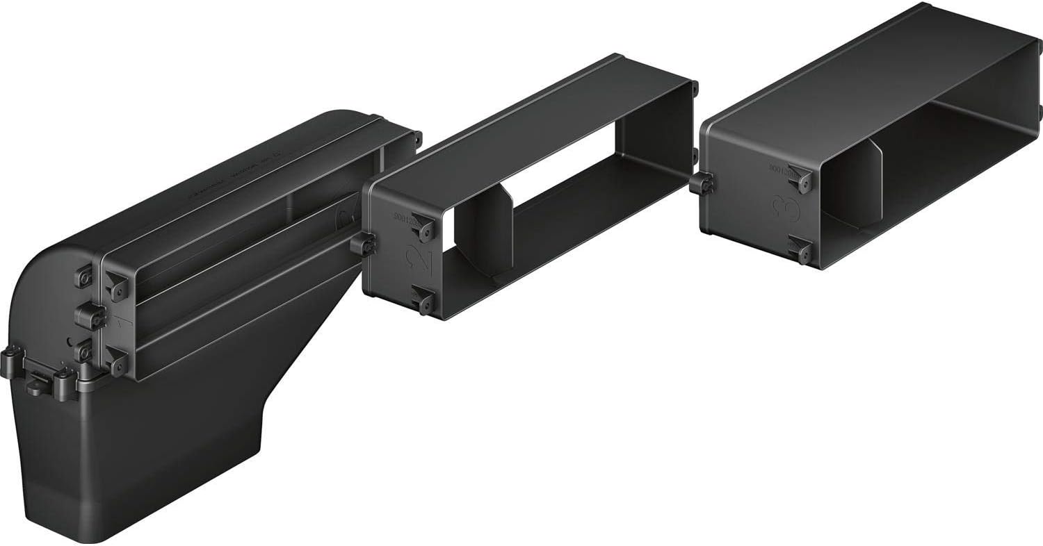- Bestehend aus: 3 zusammensteckbare Tiefenadapter (40mm 80mm 120mm) für Arbeitsplattentiefen von 600 - 750mm 90° Umlenkstück Verbindungsstück für weitergehende Verrohrungen mit 220x90mm Flachkanäle
