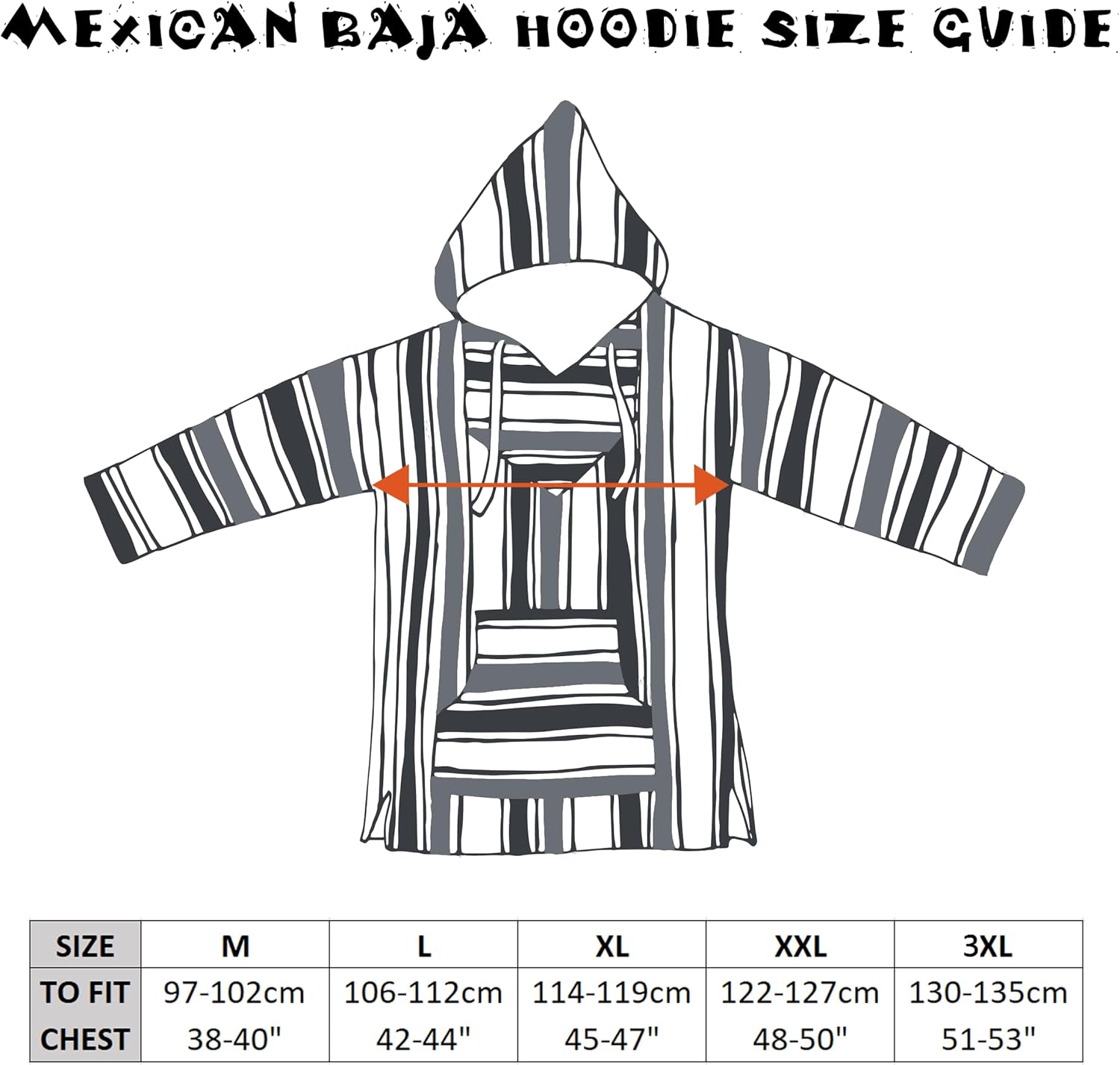 - Ein traditionelles mexikanisches Baja Jerga Hoodie Hippie Festival Top, erhältlich in einer grossen Auswahl an Farben. Das Unisex-Kapuzenoberteil ist für Männer und Frauen geeignet