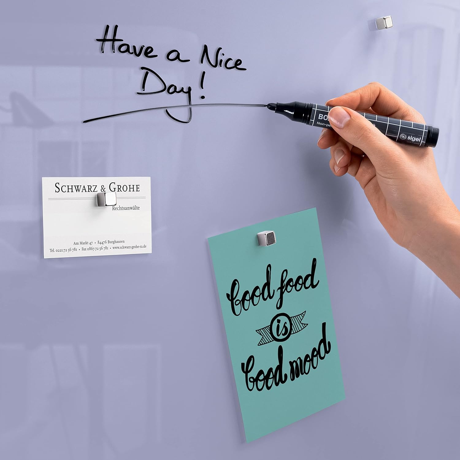 - SICHERHEIT: Die Magnetwand besteht aus Sicherheitsglas, Produkt TÜV- und GS-geprüft (SGS TÜV Saar) | 25 Jahre Garantie auf die Glasoberfläche bei Verwendung von Sigel-Zubehör (siehe Download)