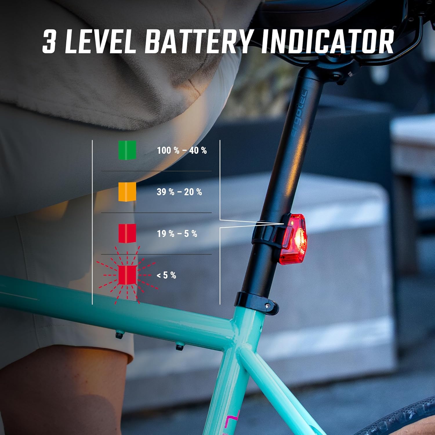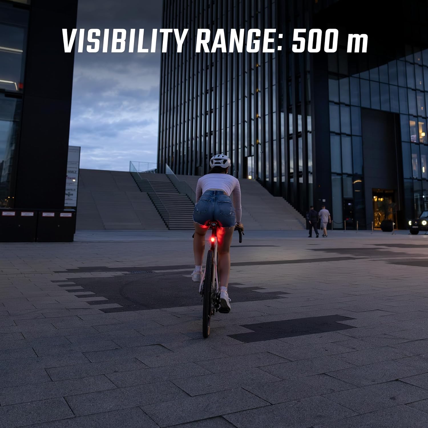 - WIEDERAUFLADBAR – Das Rücklicht verfügt über einen integrierten wiederaufladbaren Akku. Per USB-C kann die Rückleuchte in 3 Stunden wieder voll aufgeladen werden. Das spart Geld und schont die Umwelt. Ein kurzer Druck auf den Bedienknopf und die