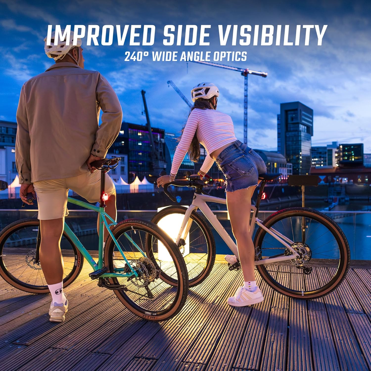 - SICHTBARKEIT – Die Hiro 10 sorgt dafür, dass Radfahrende auch von der Seite gut gesehen werden. Die Rückleuchte strahlt in einem 240 Grad Winkel ab und macht sie noch besser sichtbar. Besonders im Stadtverkehr ein wichtiges Sicherheitsfeature.