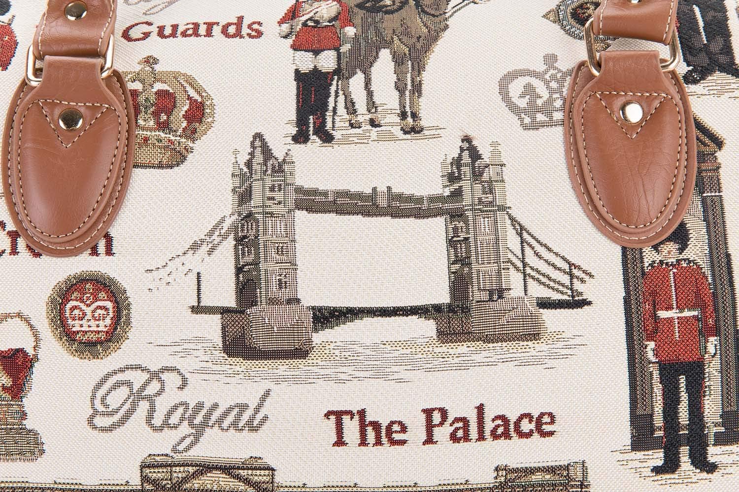 - Das Hauptmaterial für diese Reisetasche ist eine hochwertige gewebte Tapisserie. Die Einzigartigkeit einer SIGNARE TAPESTRY-Tasche liegt in dem Design-Artwork. Jedes Signare-Produkt hat seine Geschichte zu erzählen. Die königliche Garde beschützt
