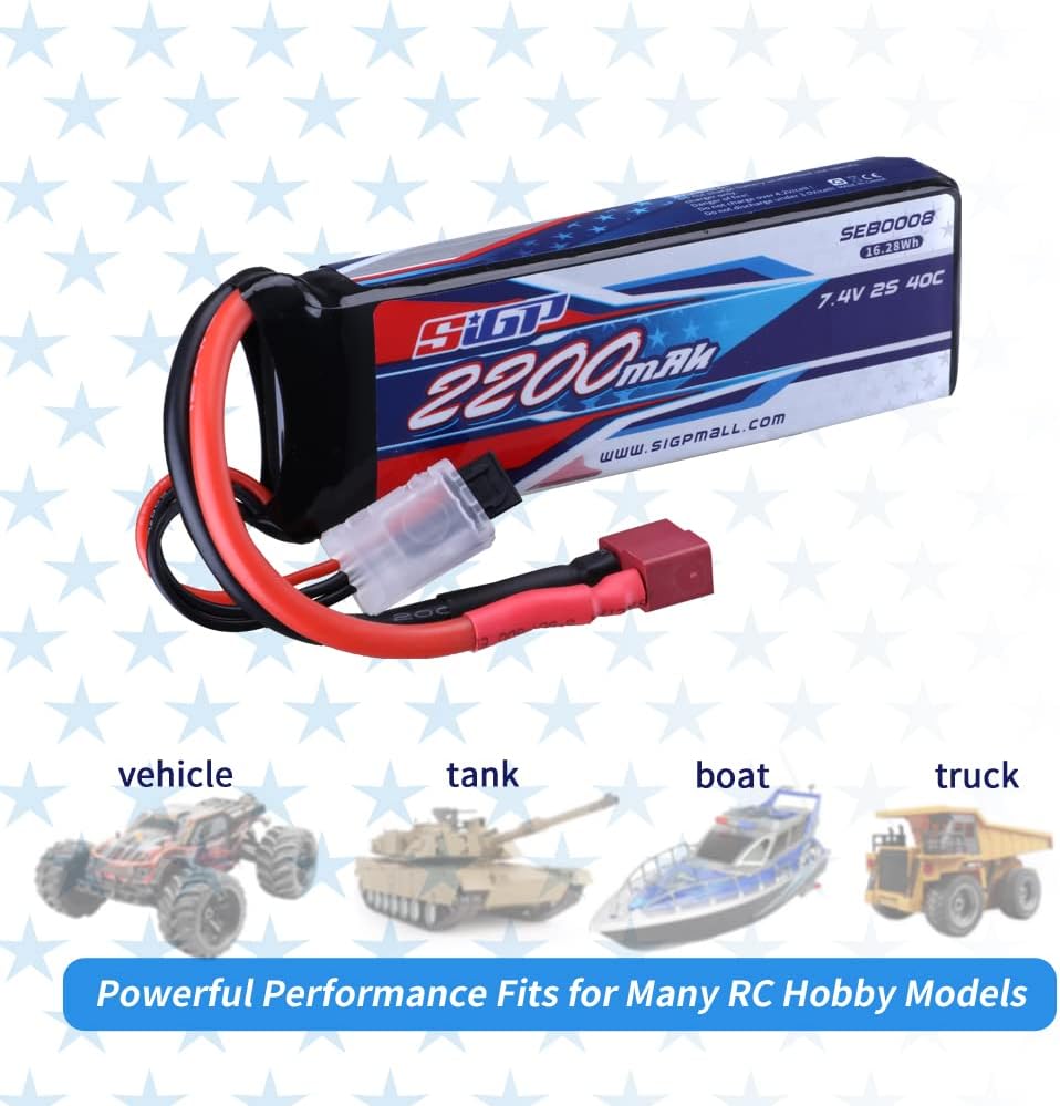 - 🥇 【Anwendung】-SIGP 2200mAh 7,4V 2S Lipo Akku geeignet für RC Buggy Truggy Fahrzeuge Auto Boot LKW Tank Racing Hobby (nur wenn die Spannung, Dimension und der Stecker übereinstimmen, dann wird es passen).