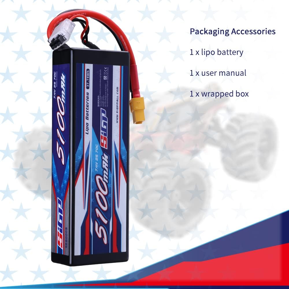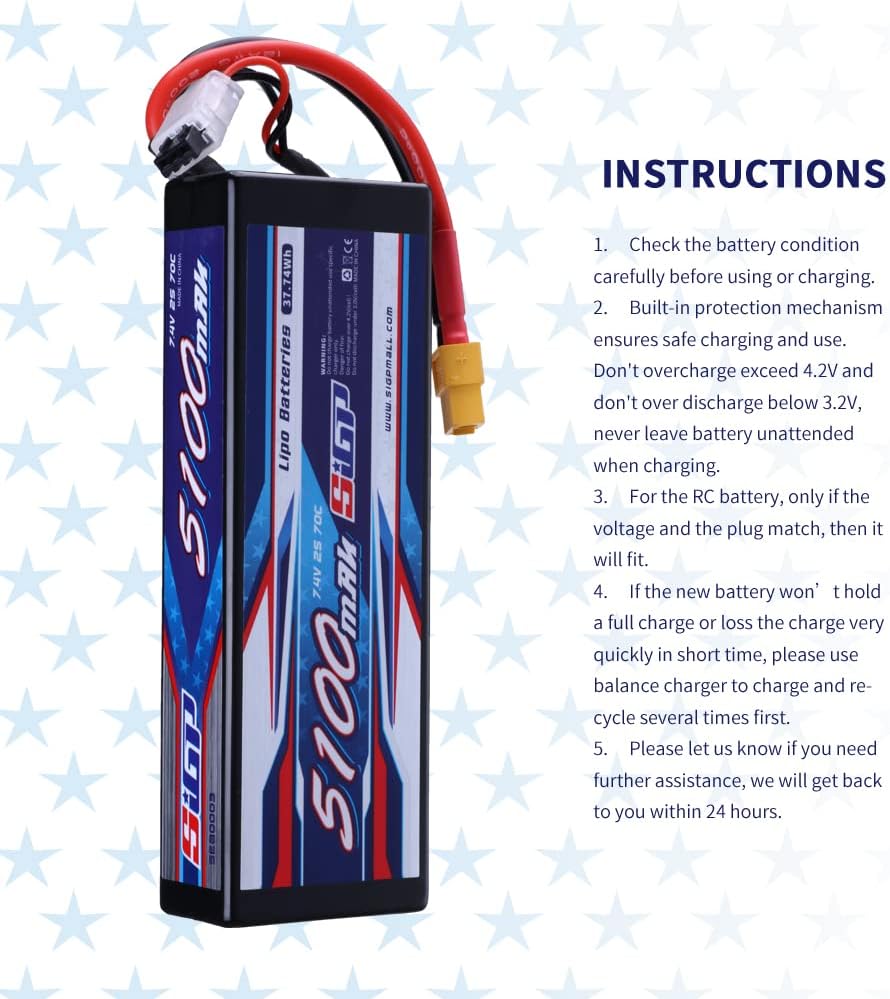 - đăWas Sie bekommenă- 1 Packung SIGP 5100mAh 7,4V 2S Lipo Akku mit XT60 Stecker. Jedes SIGP Produkt hat 30 Tage Geld-zurĂŒck-Garantie & 12 Monate Garantie. Kontaktieren Sie uns einfach, wenn Sie irgendwelche Probleme haben, wir werden so schnell
