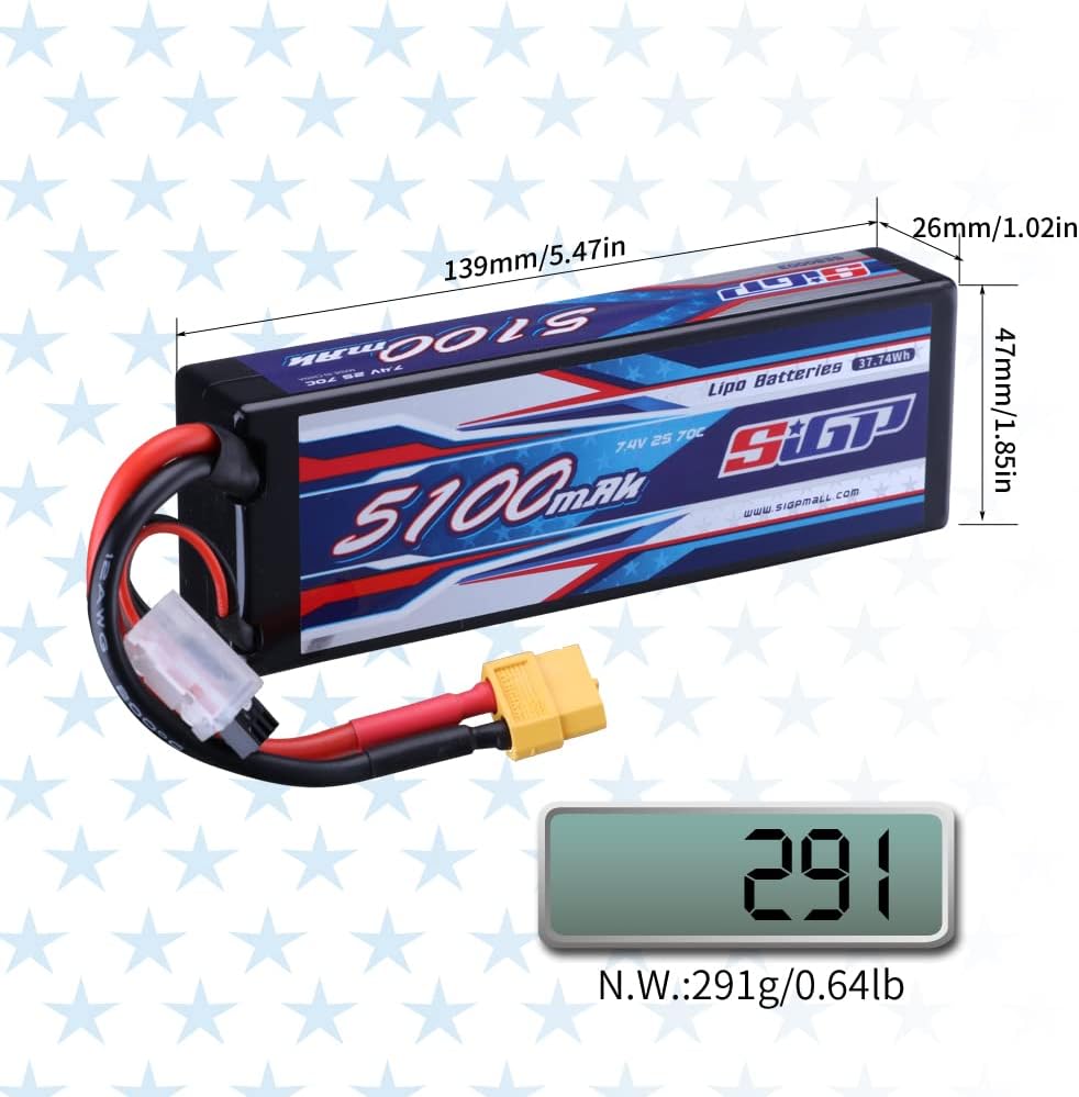 - đăBreite Anwendungă- SIGP 5100mAh 7,4V 2S Lipo Akku geeignet fĂŒr RC-Fahrzeuge,Auto,LKW,Panzer,Truggy-Rennmodell (nur wenn Spannung, Abmessung und Stecker ĂŒbereinstimmen, dann passt es)