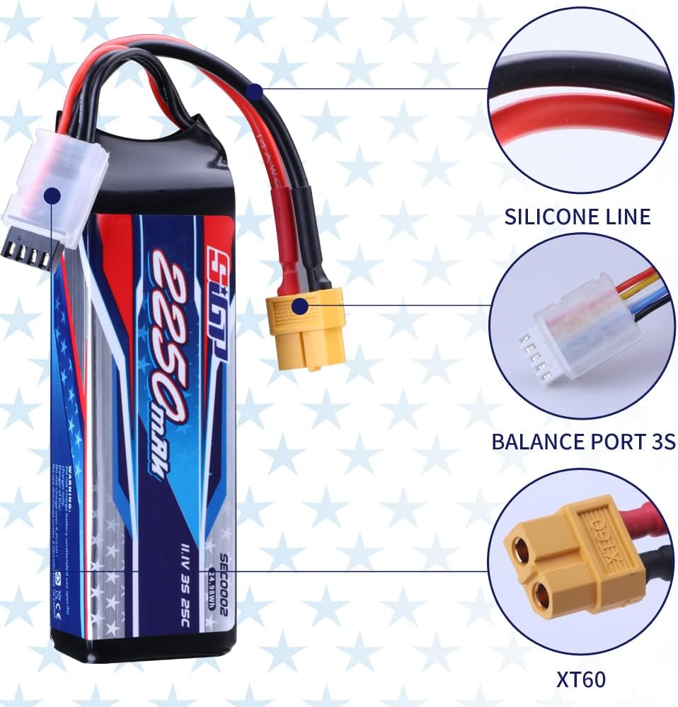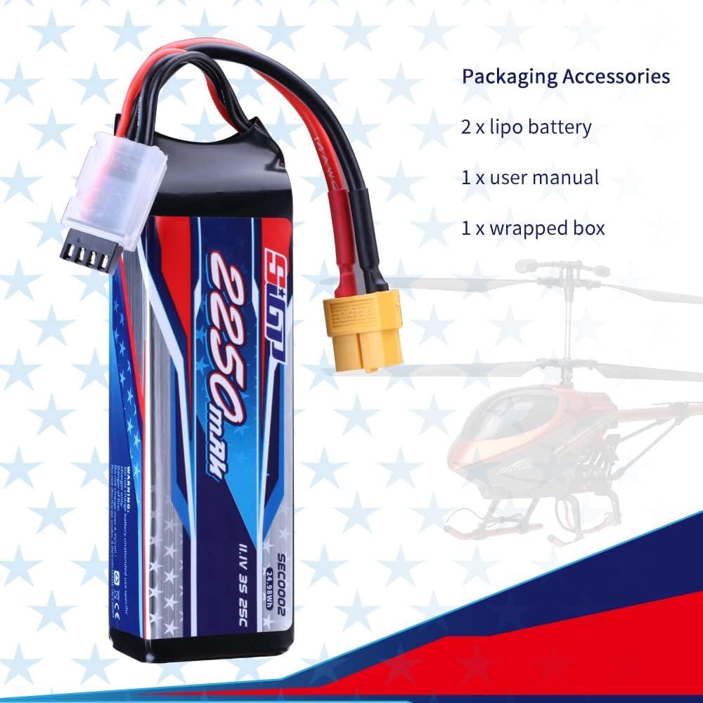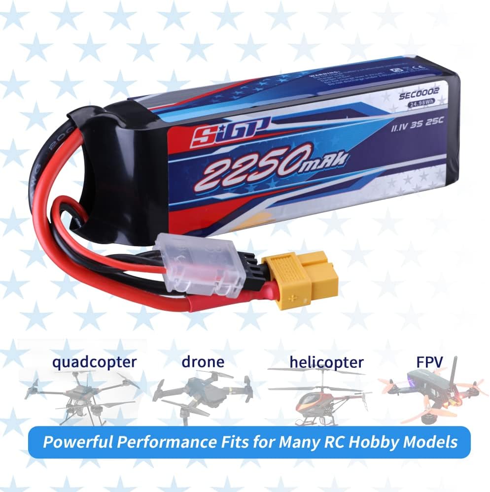 - đ„ ăAnwendungă- SIGP 2250mAh 11,1V 3S Lipo Akku geeignet fĂŒr RC FPV Helikopter Flugzeug Quadrocopter Drohne Rennmodell Hobby (nur wenn Spannung, Abmessung und Stecker ĂŒbereinstimmen, dann passt es).