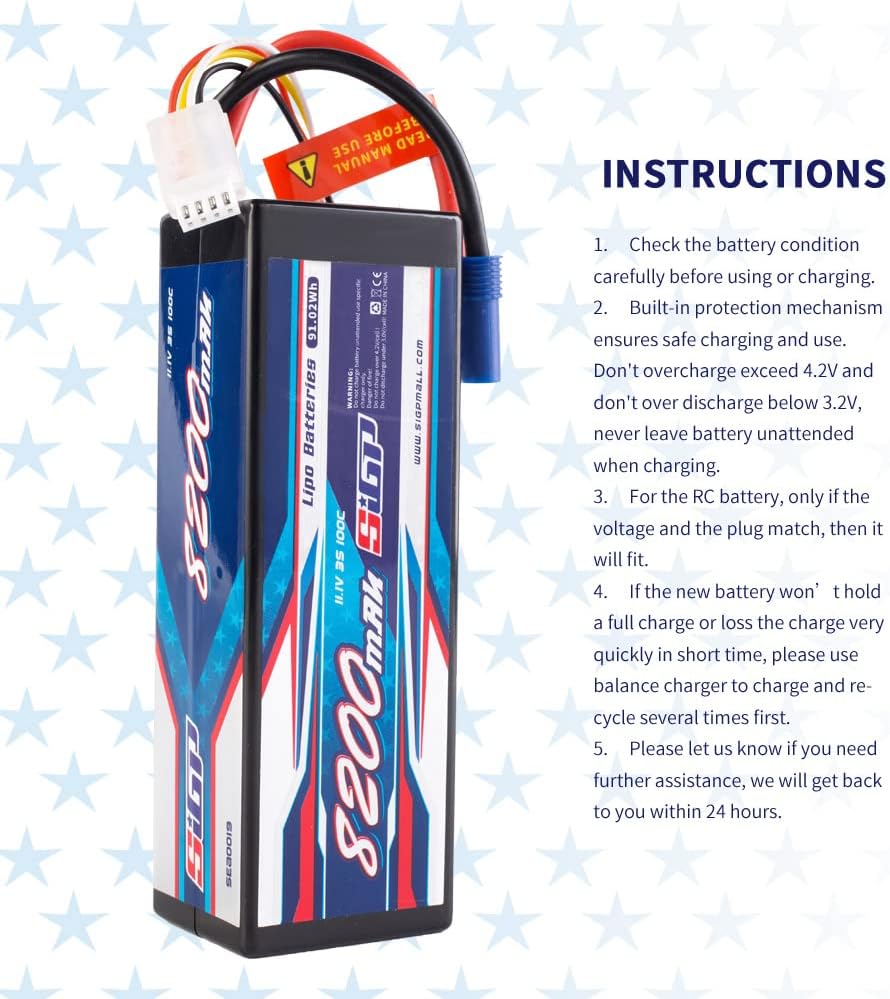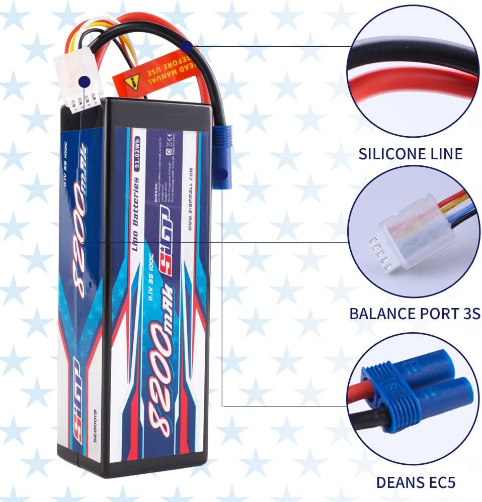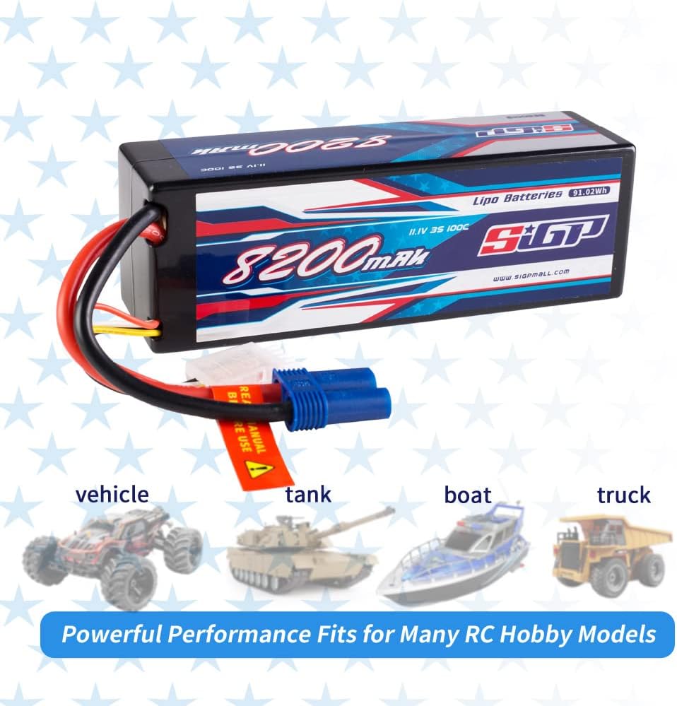 - đ„ ăAnwendungă- SIGP 8200mAh 11,1V 3S Lipo Akku geeignet fĂŒr RC Auto LKW Tank Boot Racing Hobby(nur wenn die Spannung, Dimension und der Stecker ĂŒbereinstimmen, dann wird es passen).
