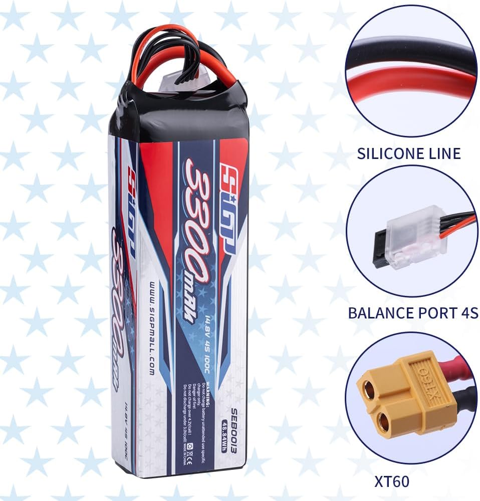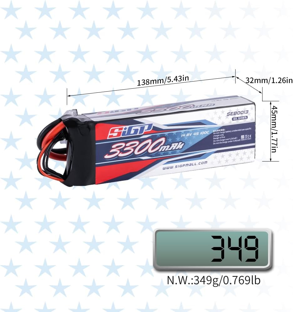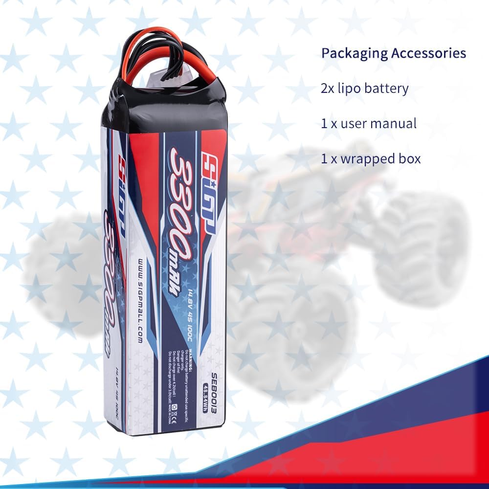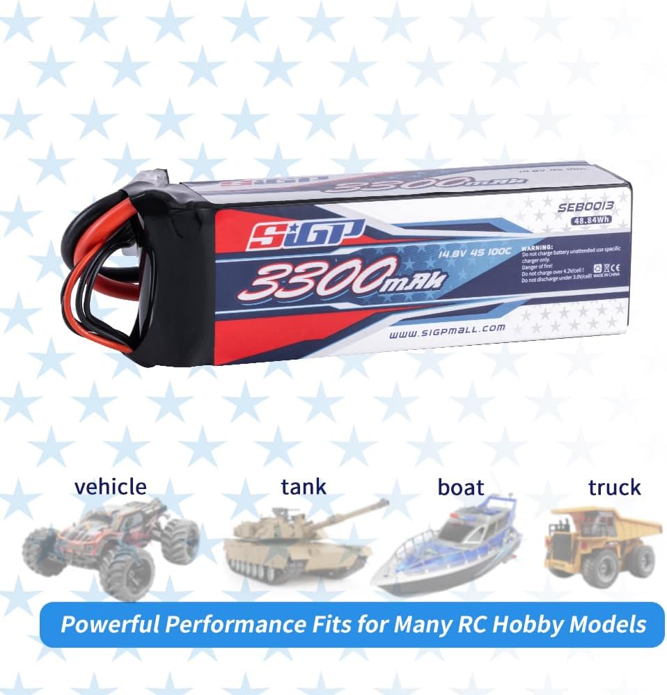 - đ„ăApplicationă- SIGP 3300mAh 14.8V 4S lipo battery suitable for RC car truck tank boat racing hobby(only if the voltage, dimension and the plug match, then it will fit).