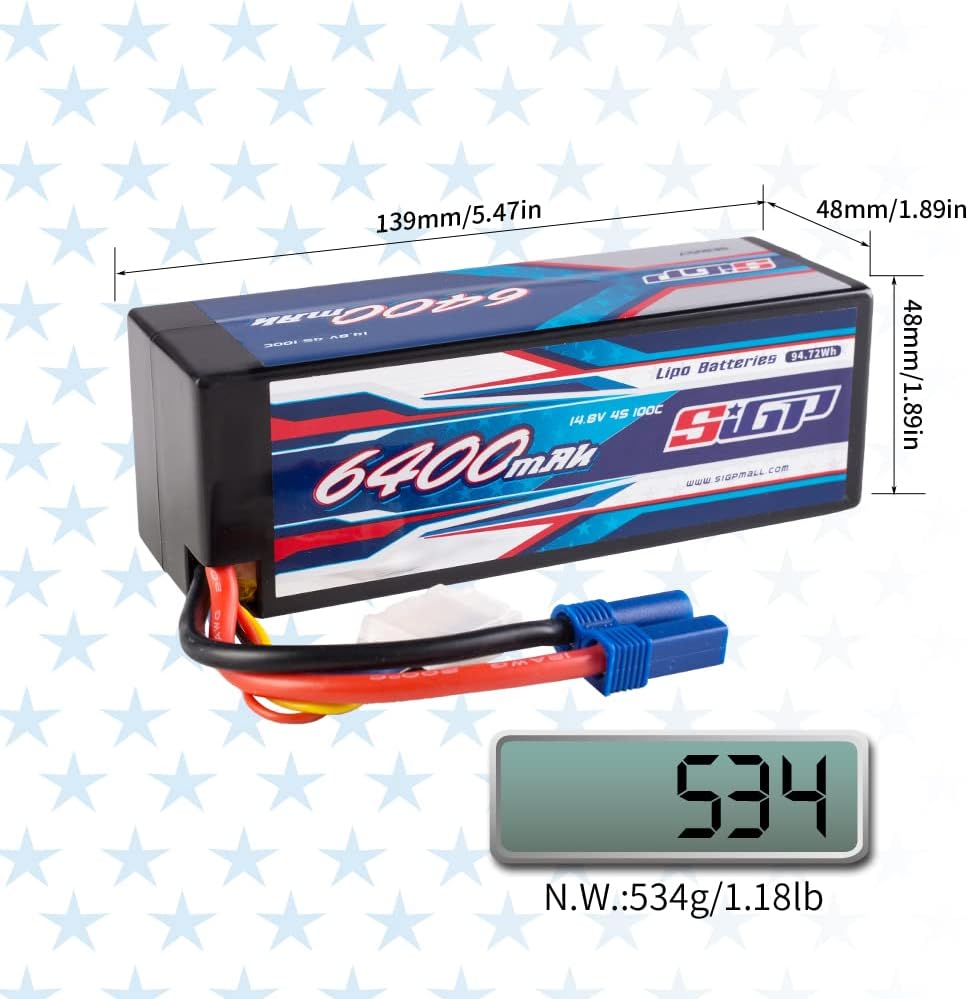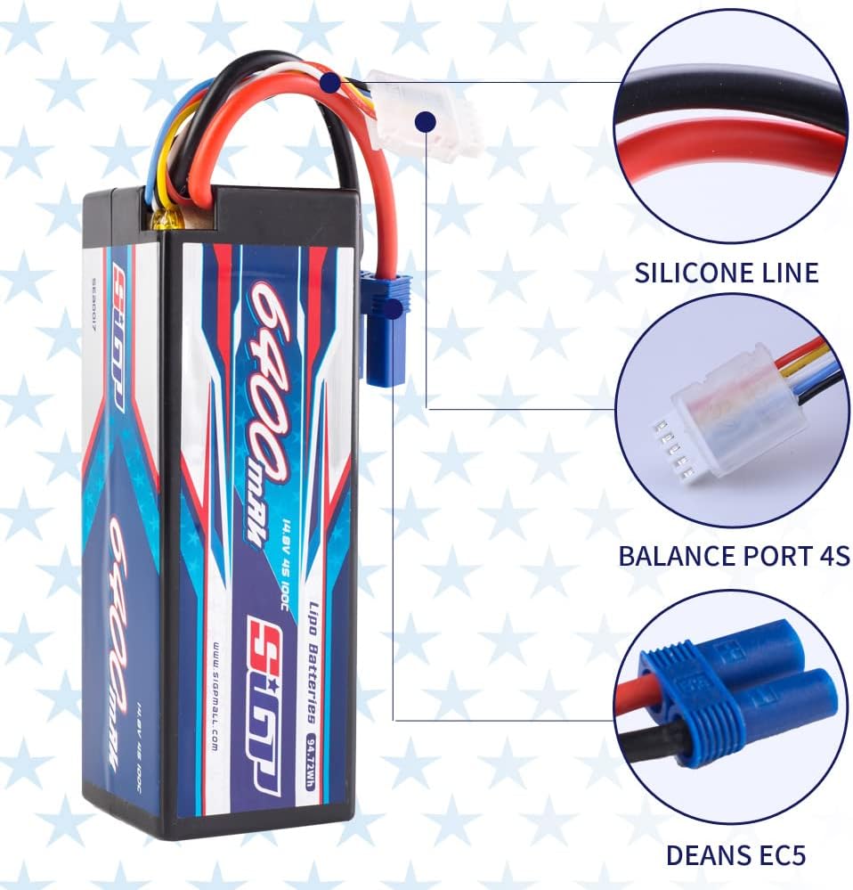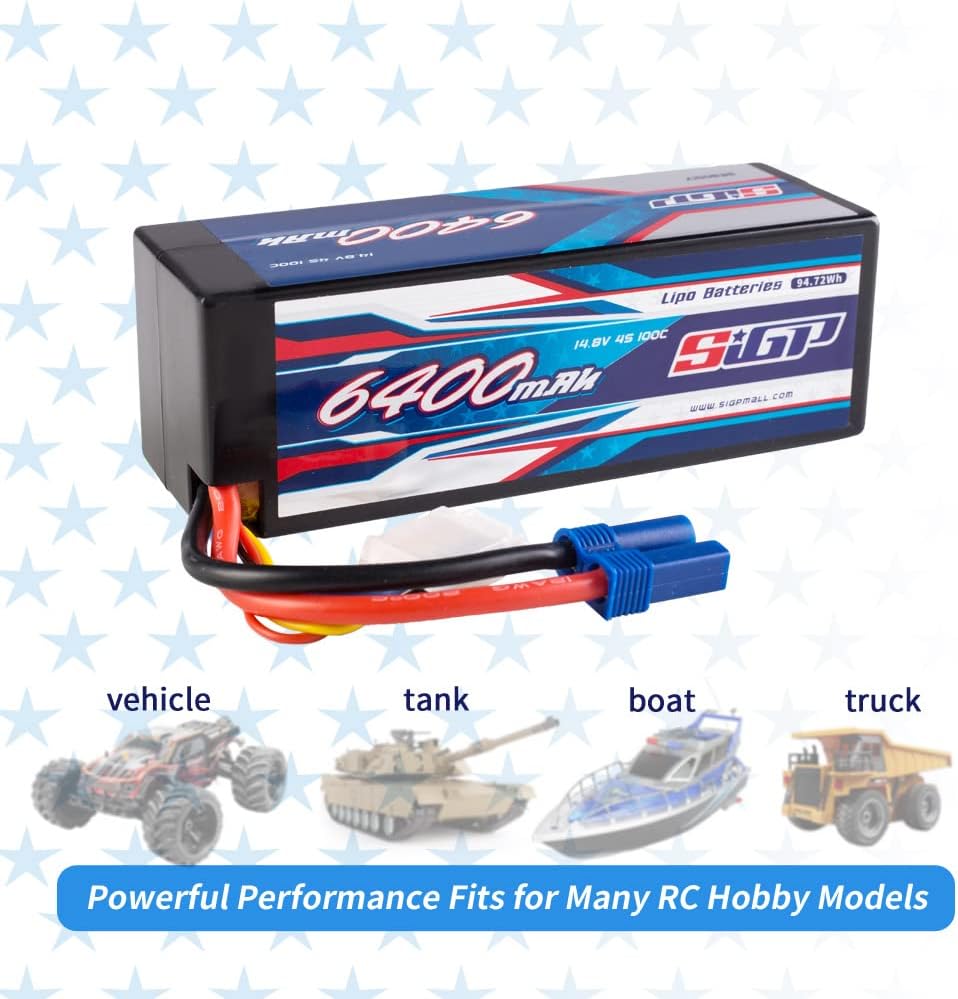 - đ„ ăAnwendungă- SIGP 6400mAh 14,8V 4S Lipo Akku geeignet fĂŒr RC Auto LKW Tank Boot Racing Hobby(nur wenn die Spannung, Dimension und der Stecker ĂŒbereinstimmen, dann wird es passen).