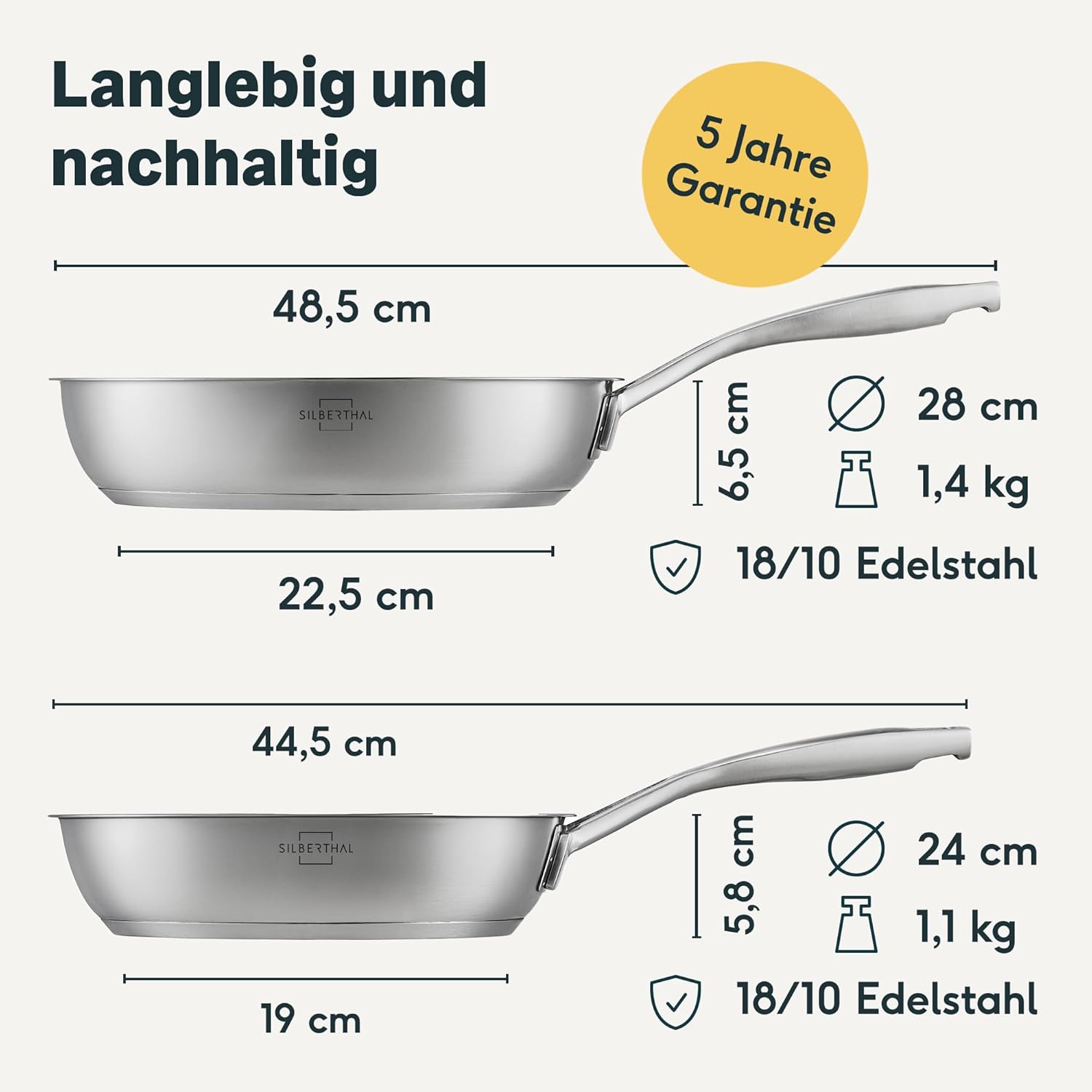 SILBERTHAL Induktion Pfannen Set - Bratpfannen 2er Set - Induktionsgeeignet - 28cm & 24cm - Edelstah