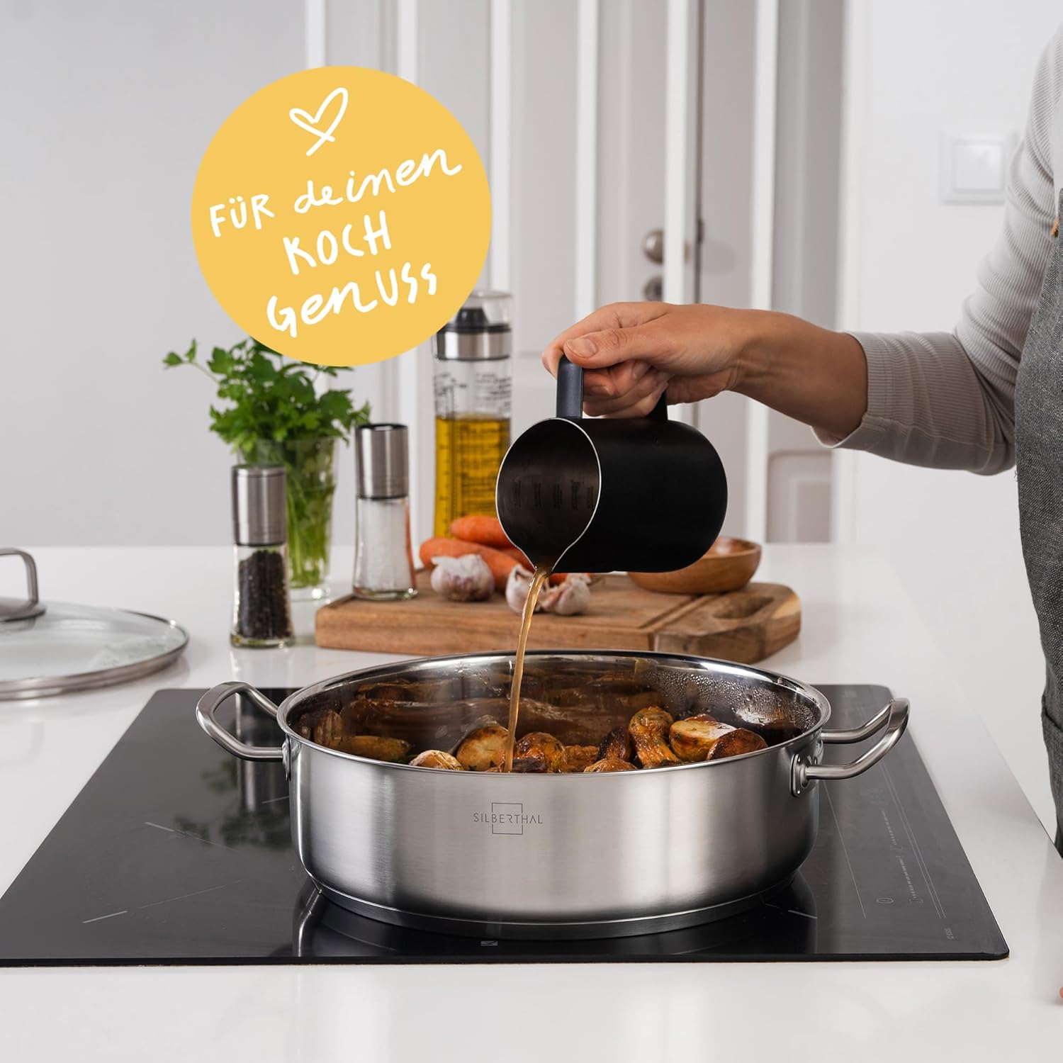 - ✔ Praktisch und stressfrei - Braten ohne Ankleben dank erstklassiger Oberflächenveredelung. Kleckerfreies Ausgiessen dank umlaufendem Schüttrand. Verringert Fettspritzer am Herd und erleichtert die Reinigung nach dem Kochen dank hohem Pfannenrand
