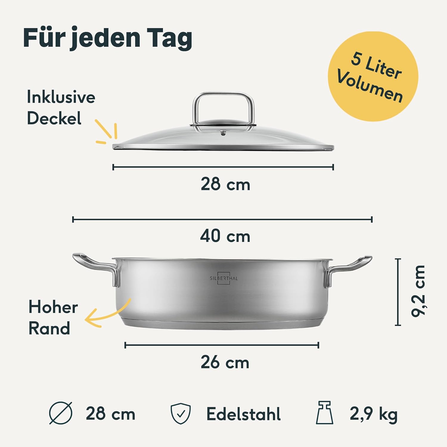 - ✔ Gesundes und zeitsparendes Schmoren - Gleichmässige & schnelle Hitzeverteilung über einen 3-lagigen Sandwichboden. Hohe Temperatur der Bratpfanne ermöglicht kurze Zubereitungszeit und erhält kostbare Nährstoffe und wertvolle Vitamine der Speisen