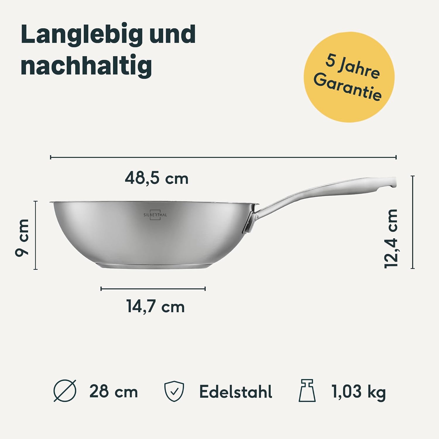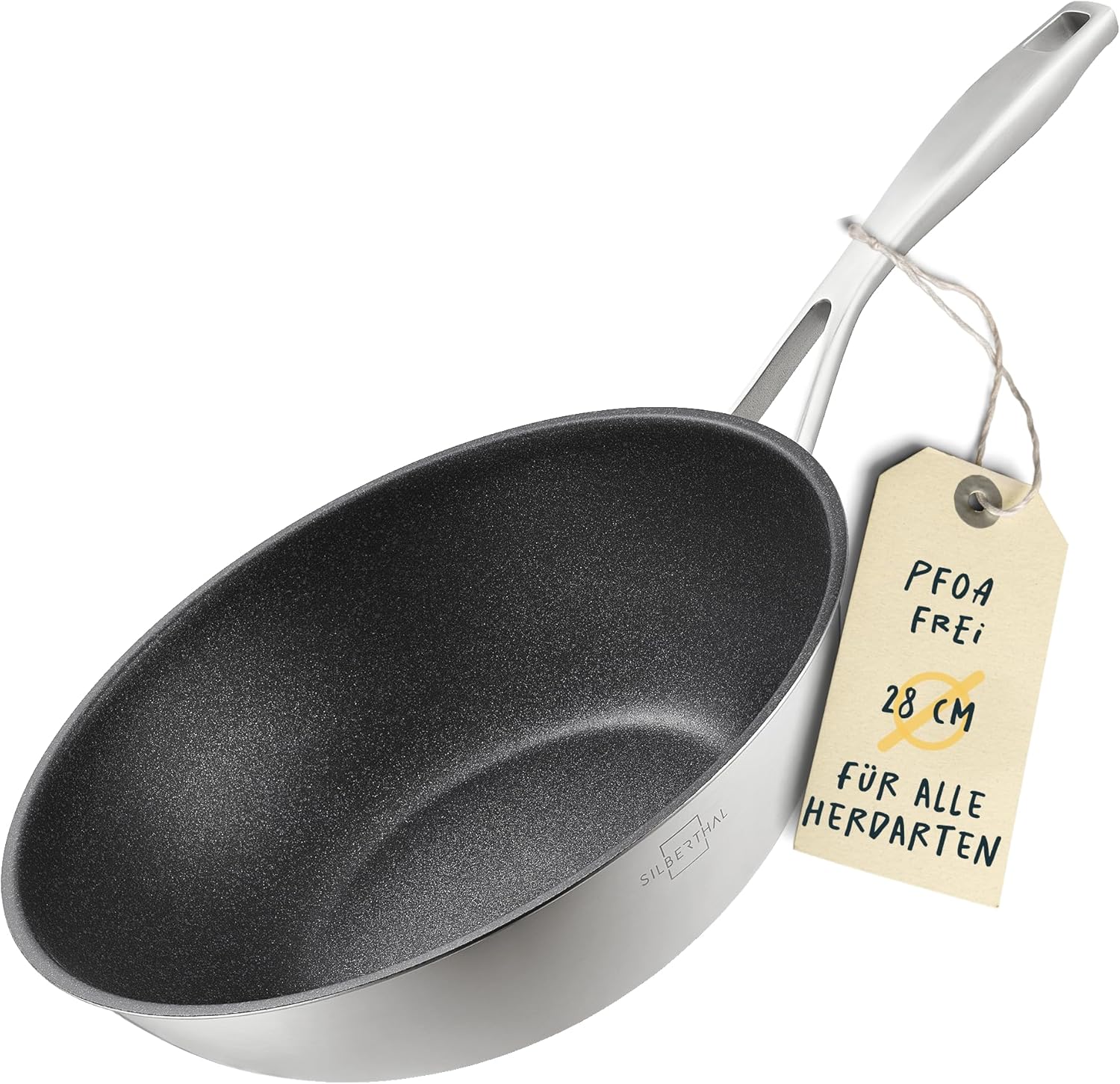 SILBERTHAL Wokpfanne Induktion 28 cm - Edelstahl Wok mit Anti-Haftbeschichtung - Für alle Herdarten