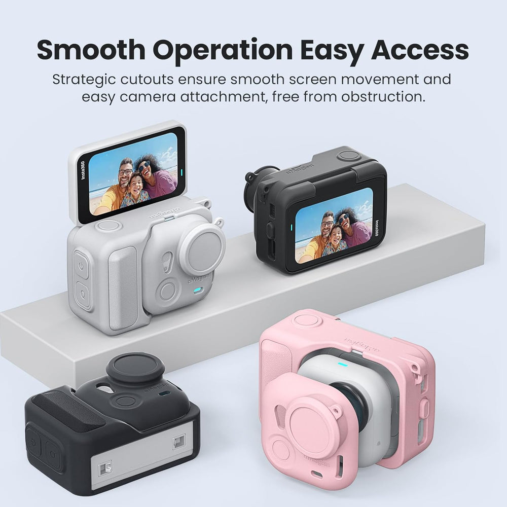 - Rundumschutz. Sowohl die Go Ultra als auch der Action Pod sind durch die Silikonhülle geschützt. Präzise Aussparungen sorgen für reibungslose Bildschirmbewegungen und eine einfache, ungehinderte Kamerabefestigung.