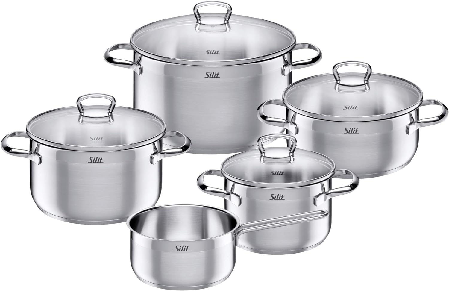 Silit Toskana Topfset Induktion 5-teilig, Edelstahl teilmattiert, Induktionstöpfe unbeschichtet, Gla