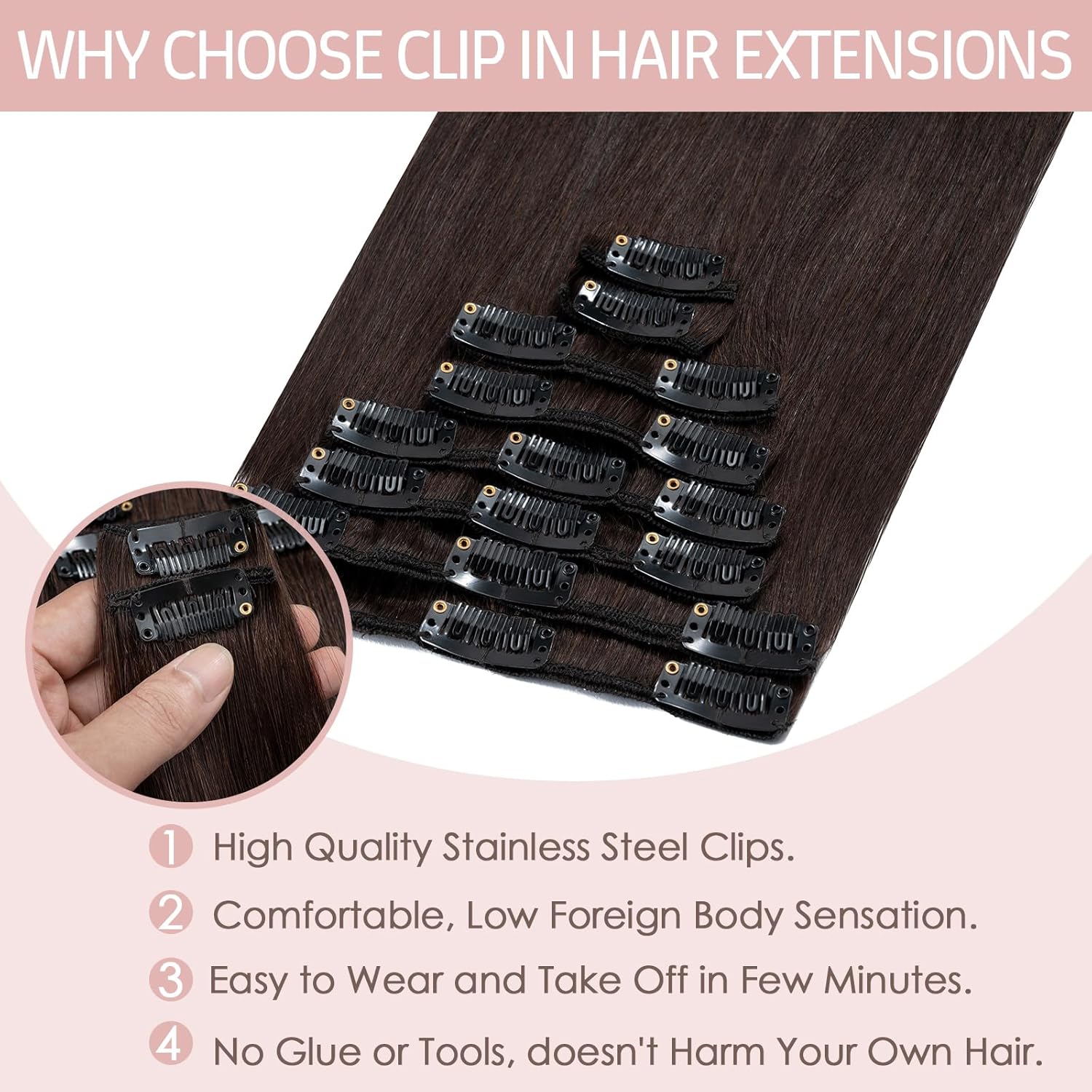 - 【Mehr Komfort und Bequemlichkeit】 Im Gegensatz zu traditionellen echthaar extensions haben clip in extensions kein Band und sind nicht schädlich für Ihre Kopfhaut oder Ihr Haar. Unsere Clip-in-Haarverlängerungen sind so konzipiert, dass sie die